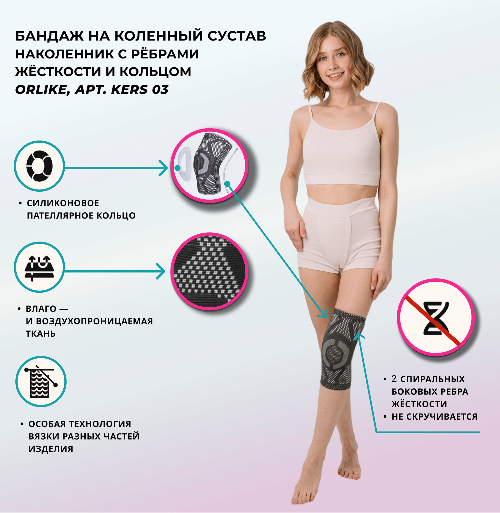 | Особенности | компрессионный / послеоперационный / силиконовые вставки / согревающий / эластичный |