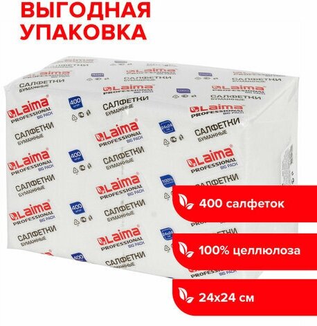 Купить Салфетки Лайма бумажные 400 шт., 24х24 см, "Big Pack", белые, 100% целлюлоза, LAIMA, 114724
