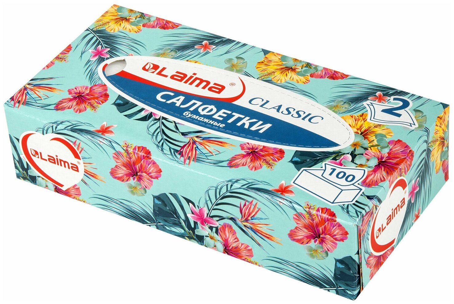 Купить Салфетки / платочки бумажные сухие белые косметические в коробке для лица 100 штук, 2-слойные, Laima Everyday, 20х20см