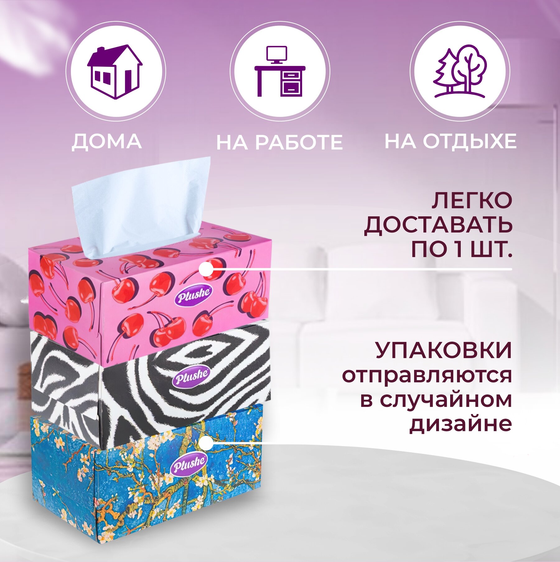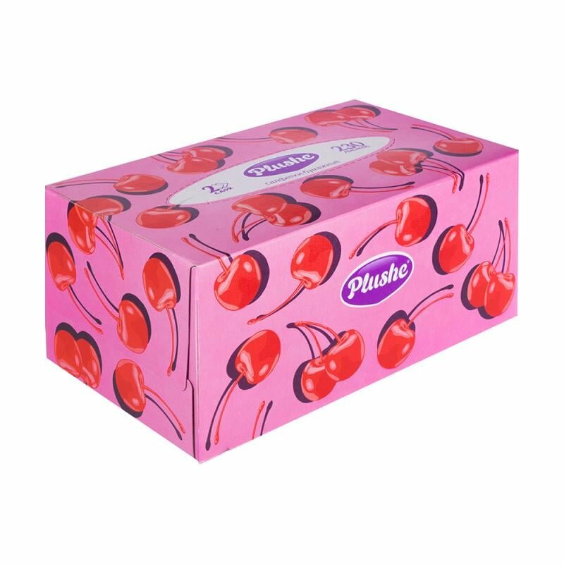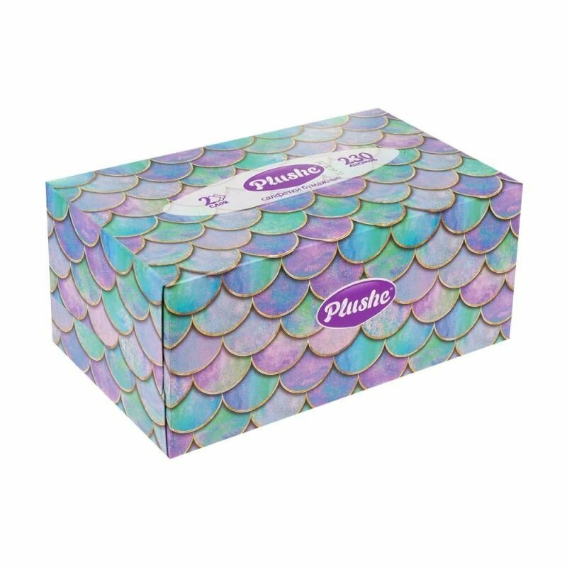 Бумажные салфетки в коробке Plushe 230 салфеток, 2 слоя, универсальные интересное: