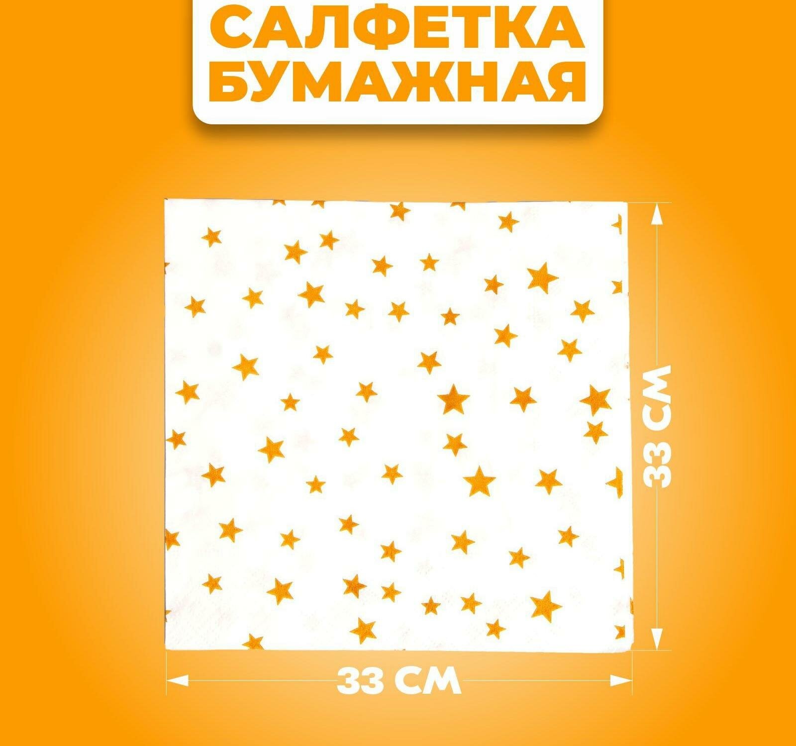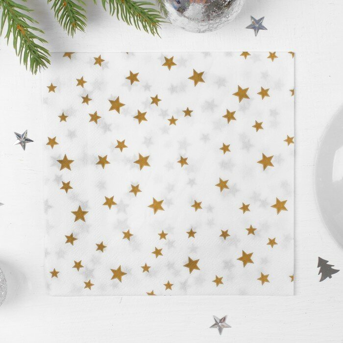 Салфетки бумажные "Звёзды", размер: 33х33 см, набор из 20 штук, праздник, день рождения, цвет золотой