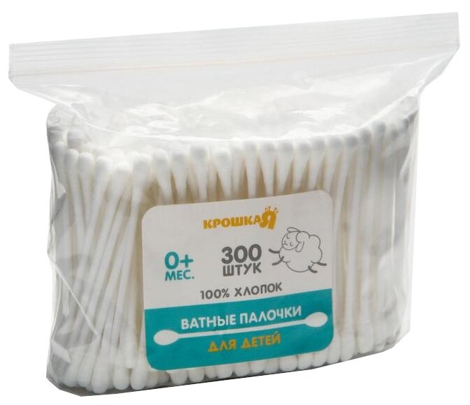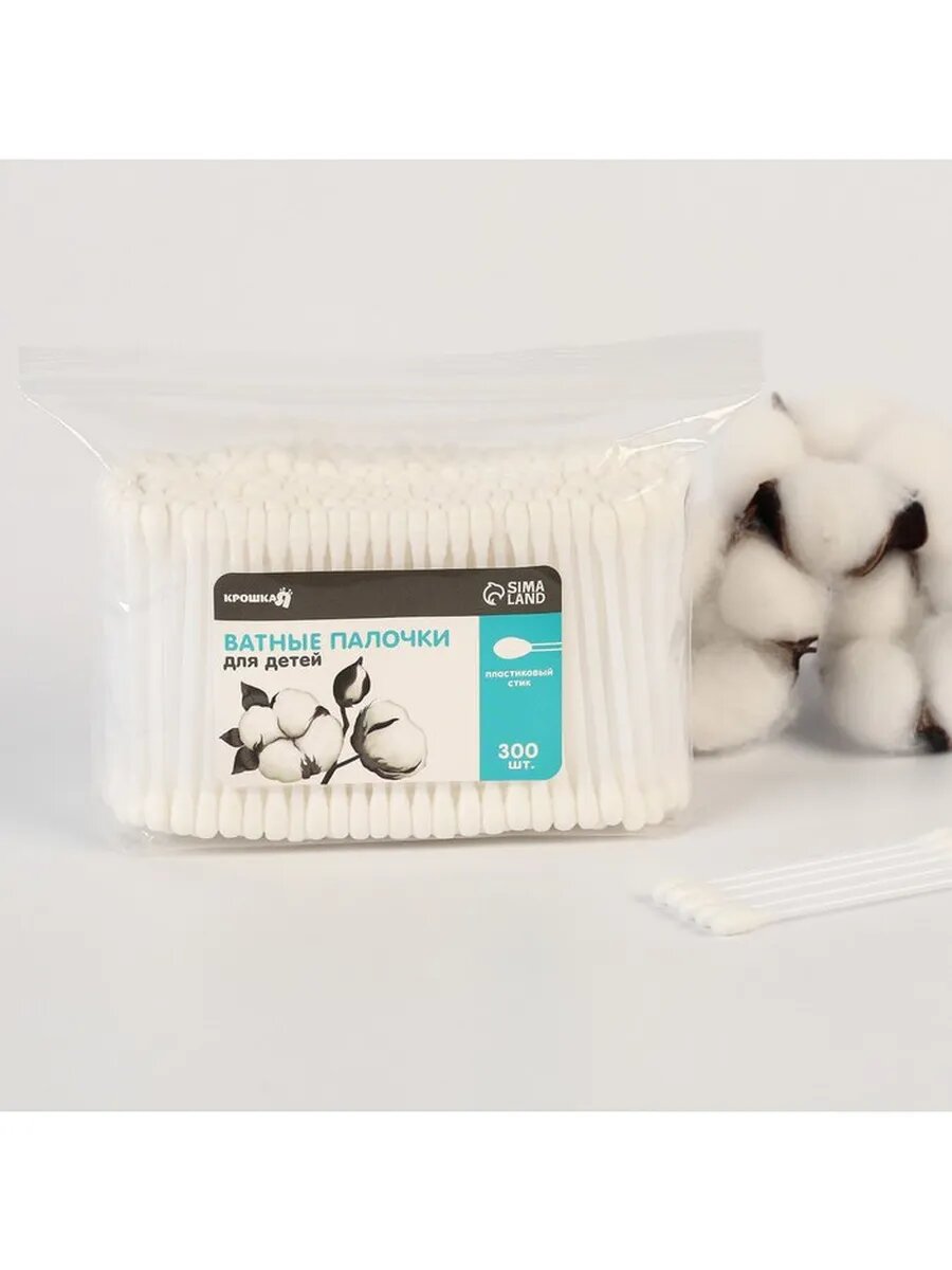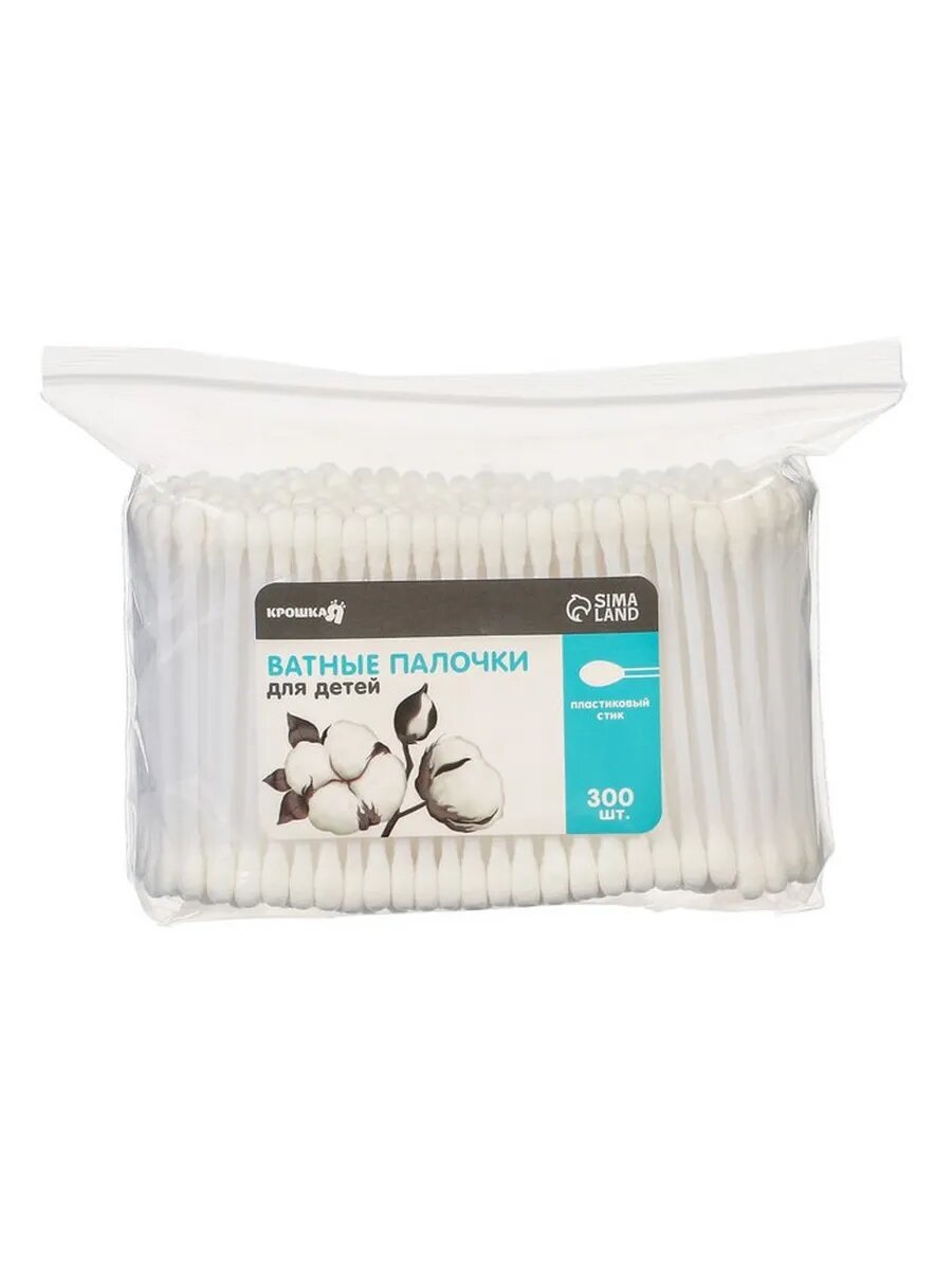 Ватные палочки, пакет 300 шт., наконечник - классика, хлопок/пластик(стик), для детей и малышей