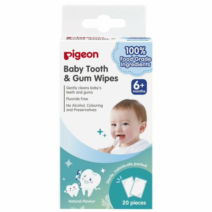 Купить PIGEON Средства детские для ухода за полостью рта Салфетки для чистки молочных зубов без аромата Baby Tooth&Gum Wipes 20шт