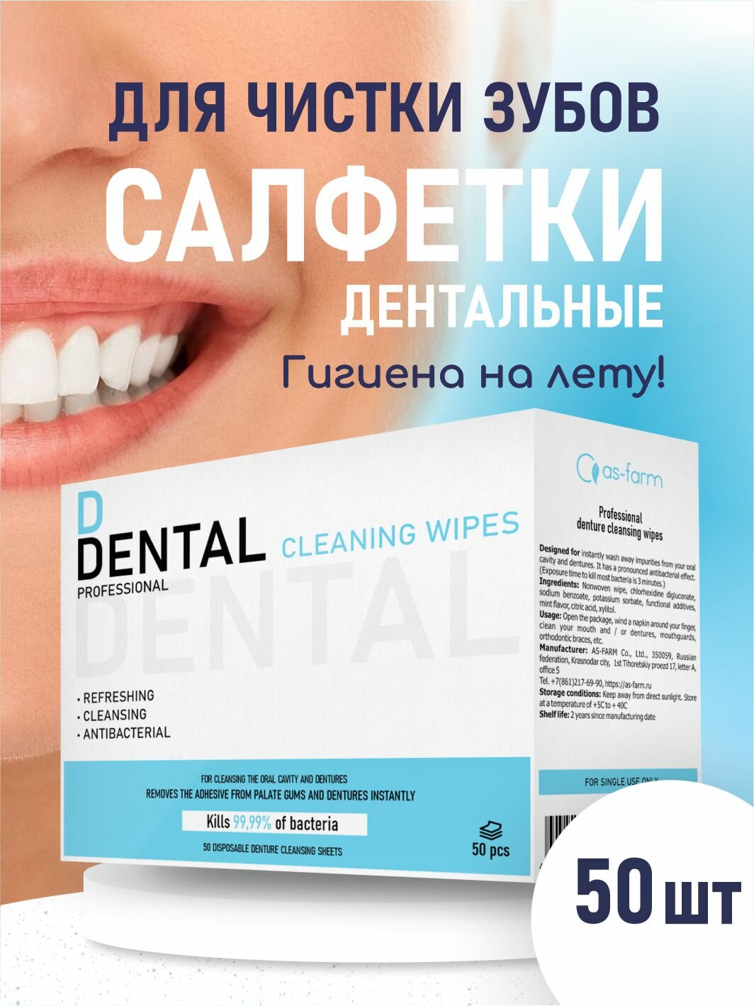 Салфетки дентальные с ксилитом и мятой "АС-Фарм" 50 шт, для чистки зубов интересное: