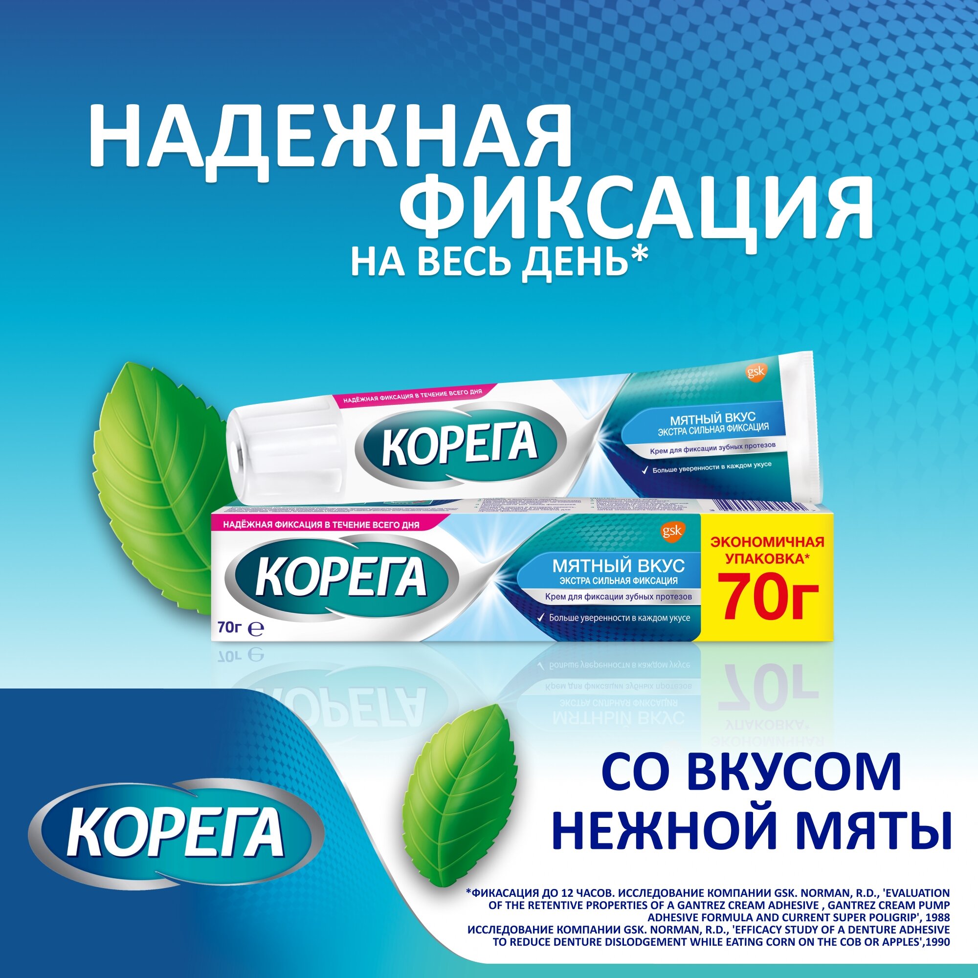 Корега Экстра Сильный Мятный крем для всесторонней фиксации съемных зубных протезов до 12 часов, мятная свежесть, 70 г