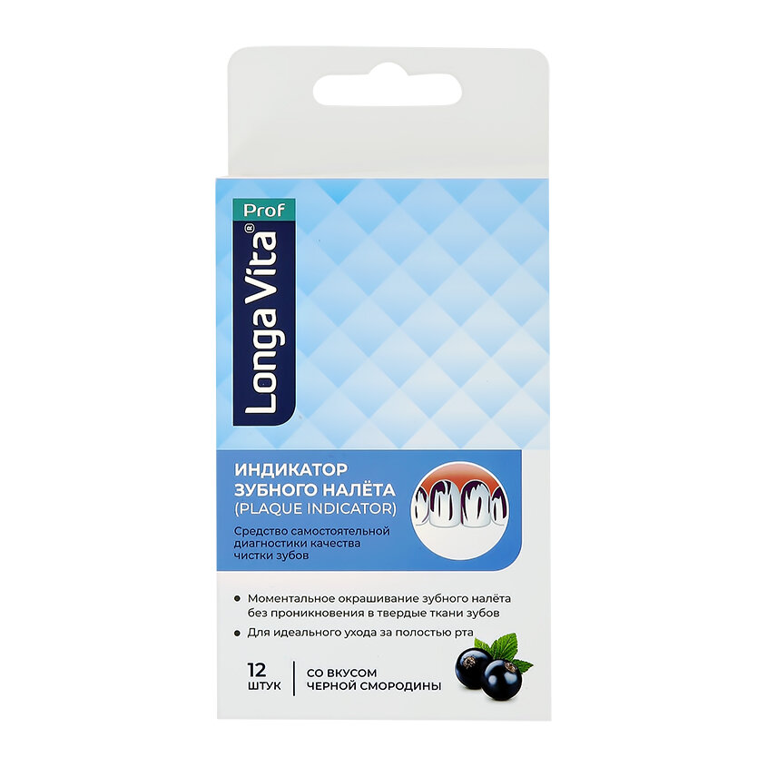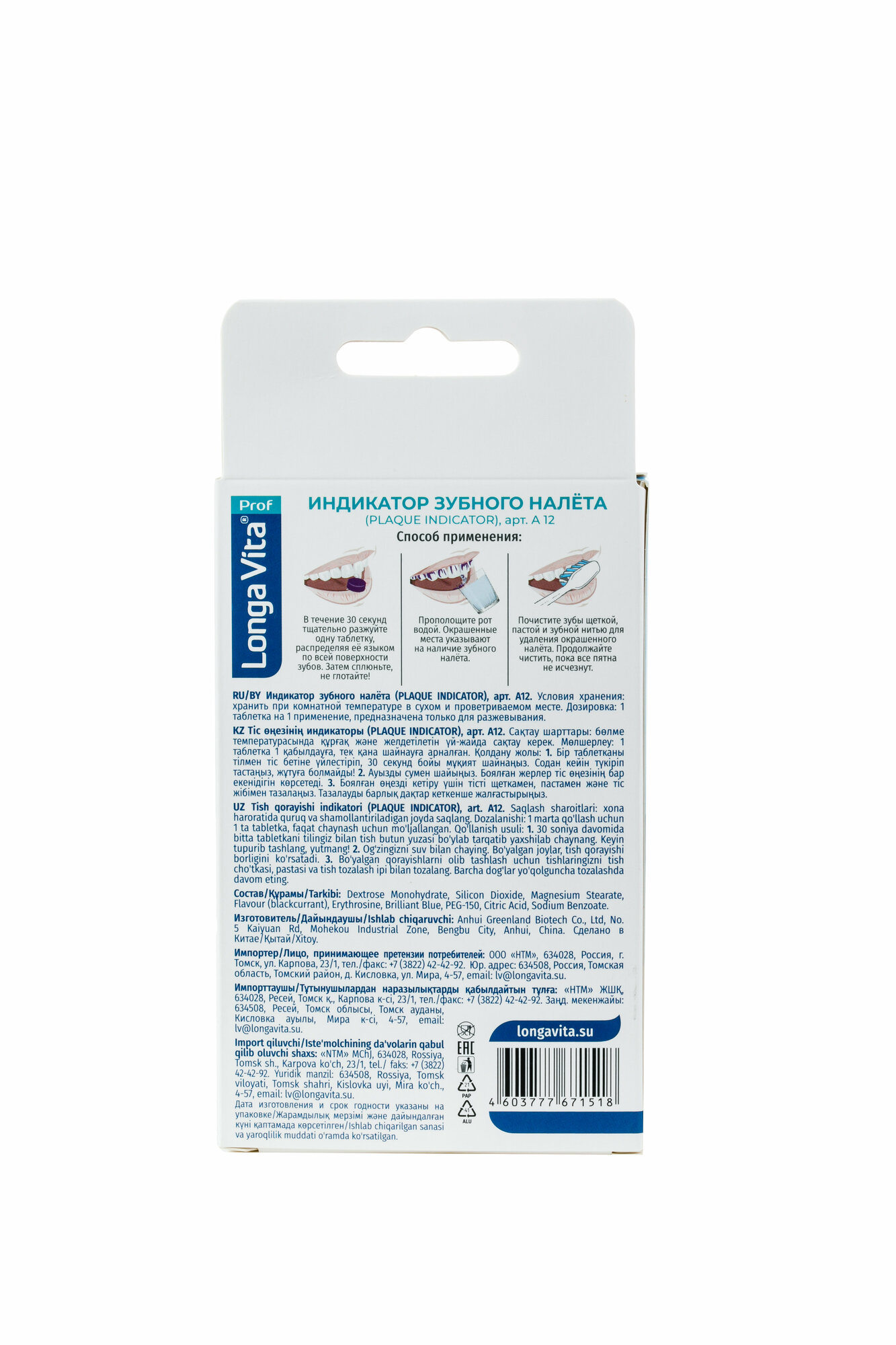 Индикатор зубного налёта Лонга Вита (PLAQUE INDICATOR), арт. А 12 (таблетки), 12 штук со вкусом чёрной смородины. интересное: