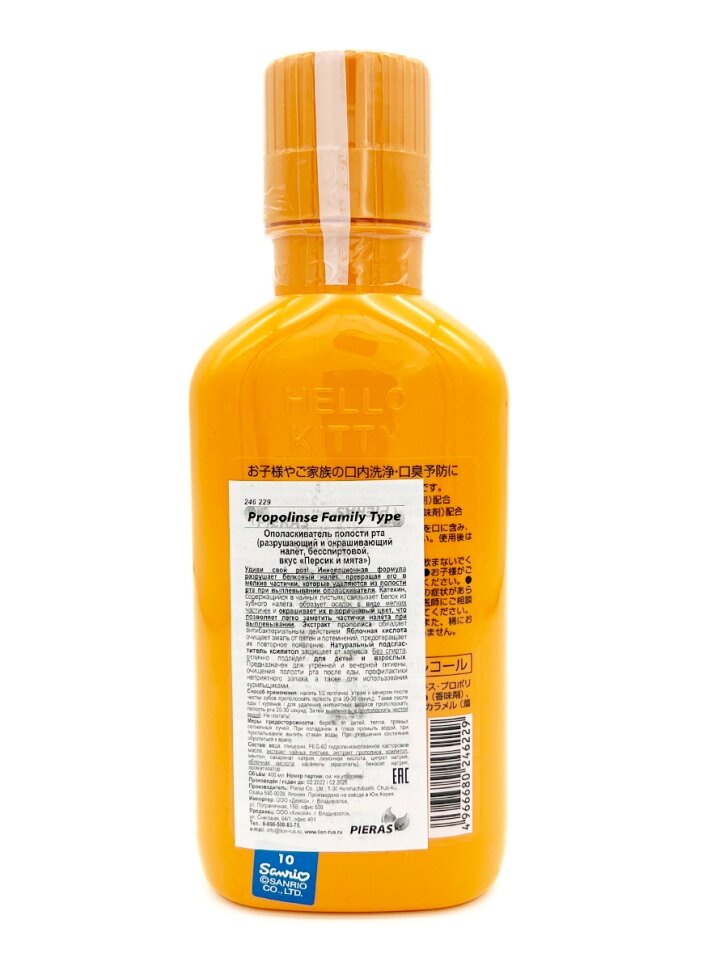 Купить PIERAS Ополаскиватель полости рта Propolinse Family Type разрушающий и окрашивающий налёт, бесспиртовой, вкус Персик и мята, 400 мл.