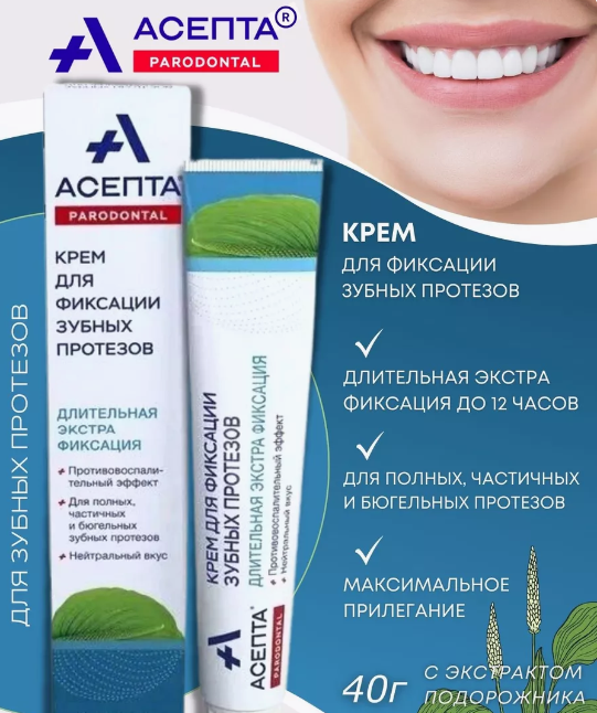 Асепта, крем для фиксации зубных протезов (нейтральный вкус) 40 г интересное: