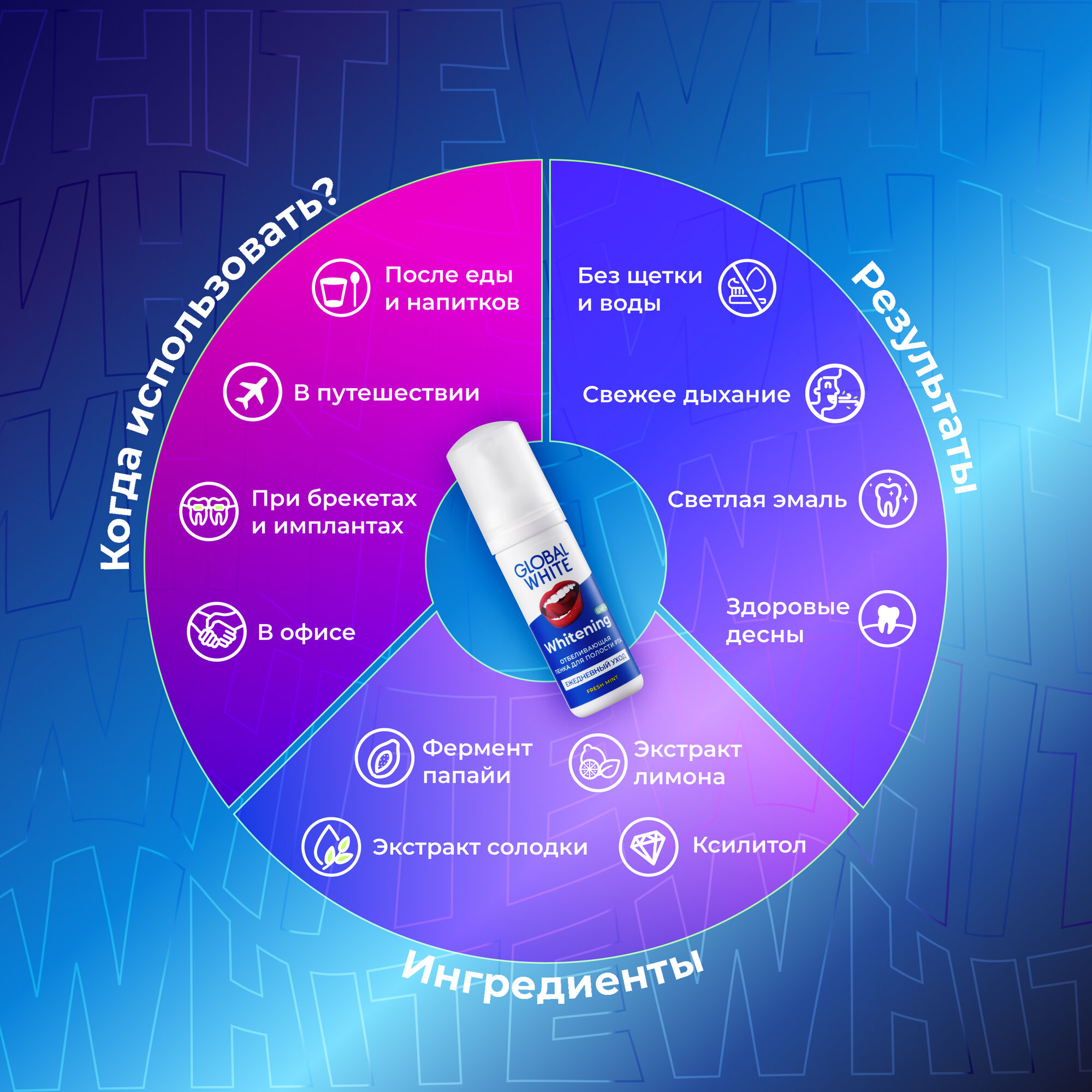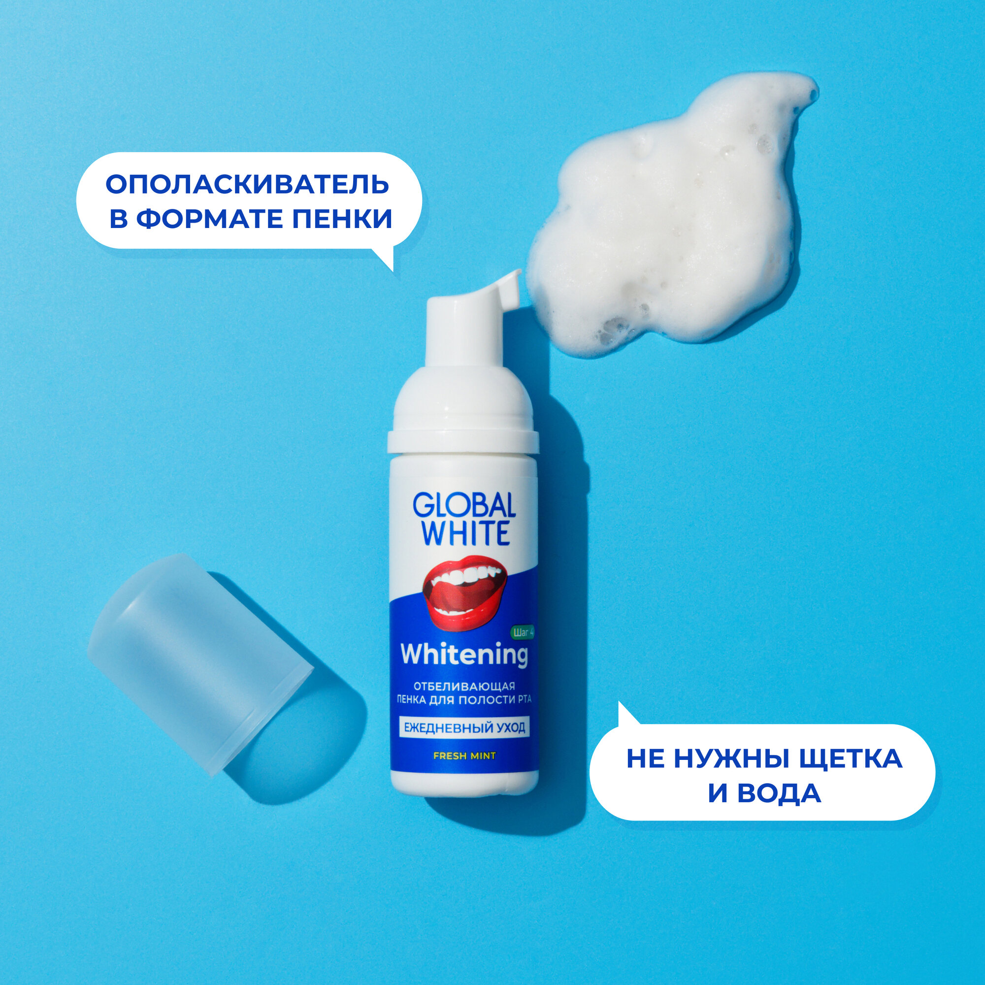 Отбеливающая пенка для полости рта Global White, 2 штуки интересное: