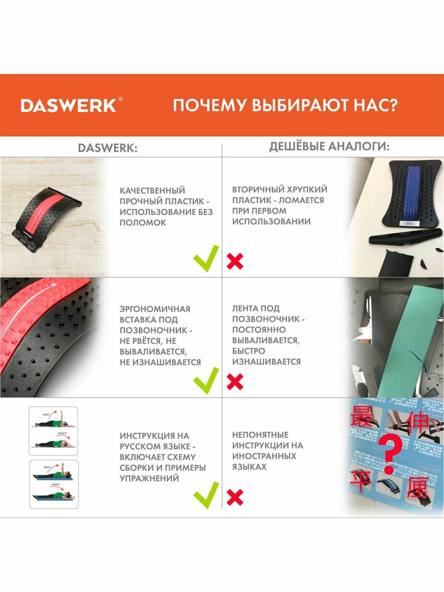 Тренажер для спины мостик, массажер для растяжки Premium, 3 уровня нагрузки, красная вставка, Daswerk 680034 интересное: