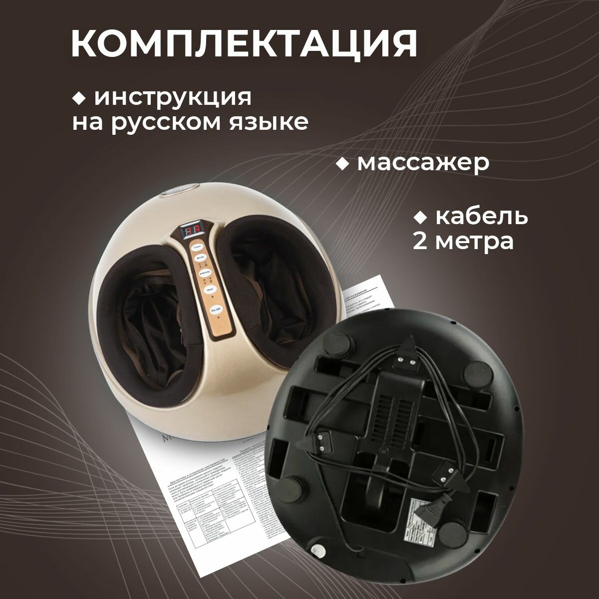 | Подробная комплектация | воздушный насос - 1 шт., воздушные подушки для ног - 2 шт. адаптер - 1 шт., инструкция на русском языке |