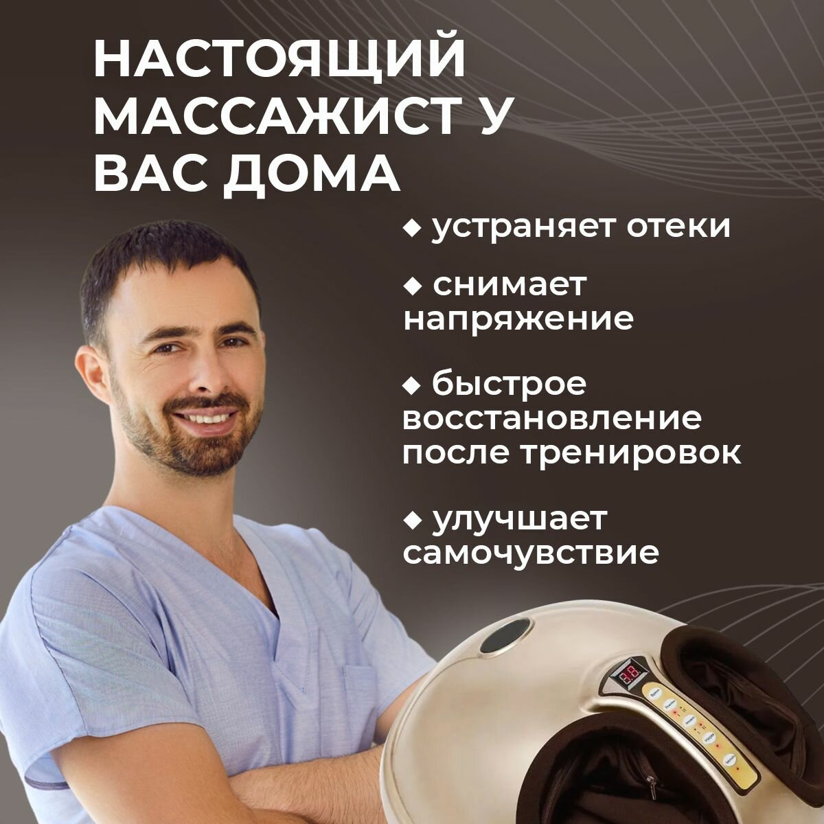 Ниже Вы можете прочитать отзывы на Массажер для ног электрический, роликовый, воздушно-компрессионный с прогревом, 4 программами массажа, 2 мотора СМ2709 золотой, ознакомится с подробными характеристиками, посмотреть интересные обзоры и фотографии на Массажер для ног электрический, роликовый, воздушно-компрессионный с прогревом, 4 программами массажа, 2 мотора СМ2709 золотой.
