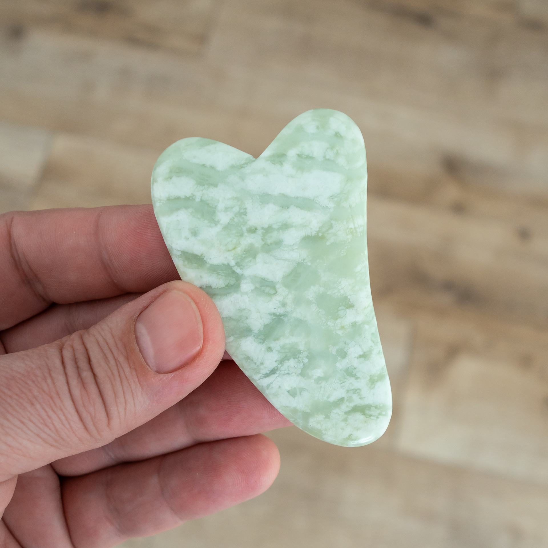 Cкрeбoк Гуашa мaccажный из бело-зёлeного нефрита. Cкрeбок нефритовый для массажа лица и тела. Подарок девушке и женщине на день рождения