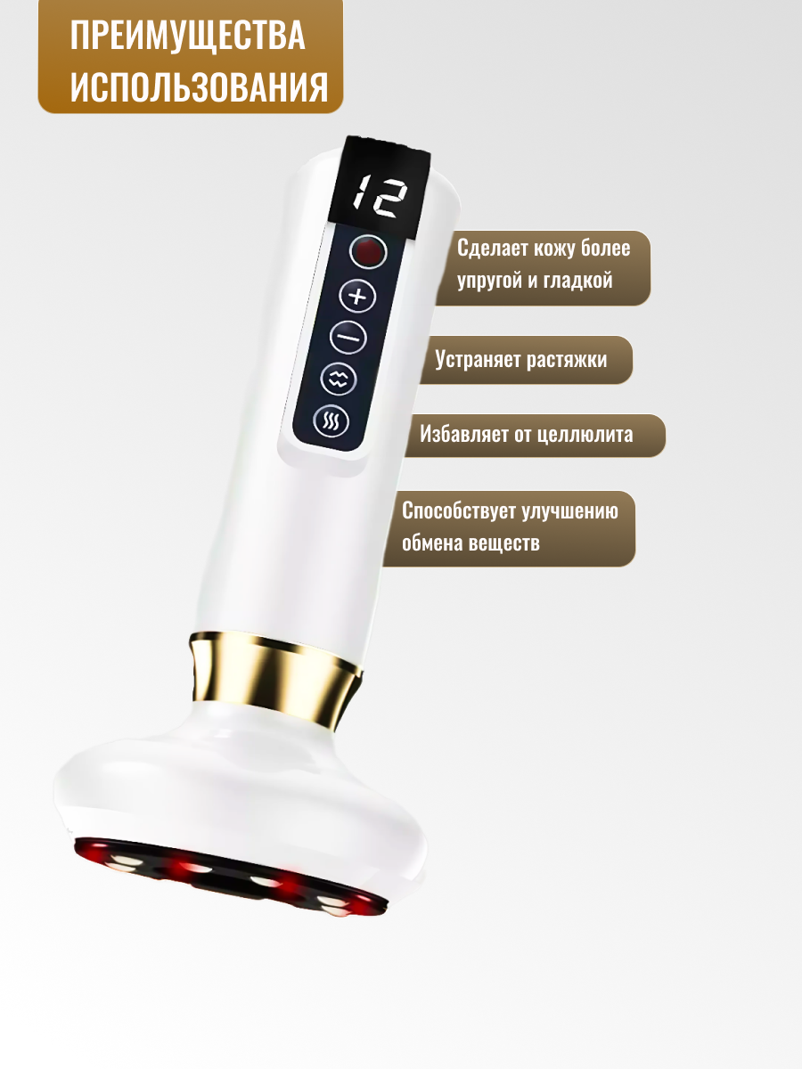 | Вид массажа | акупунктурный / вакуумный / вибрационный / лимфодренажный / расслабляющий / роликовый |
