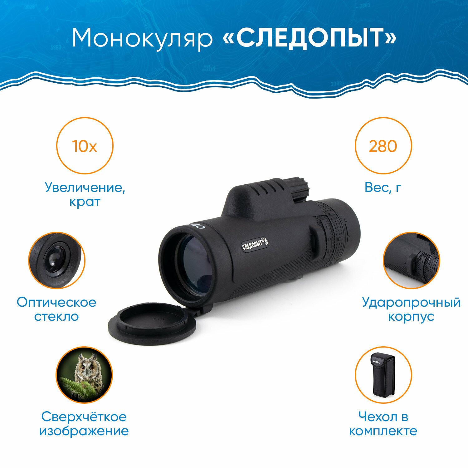 Монокуляр 10х40 "следопыт", черный в чехле, 150*67*51 мм / Оптика для охоты / Монокуляр охотничий / Бинокль для туризма / Монокуляр для путешествий интересное: