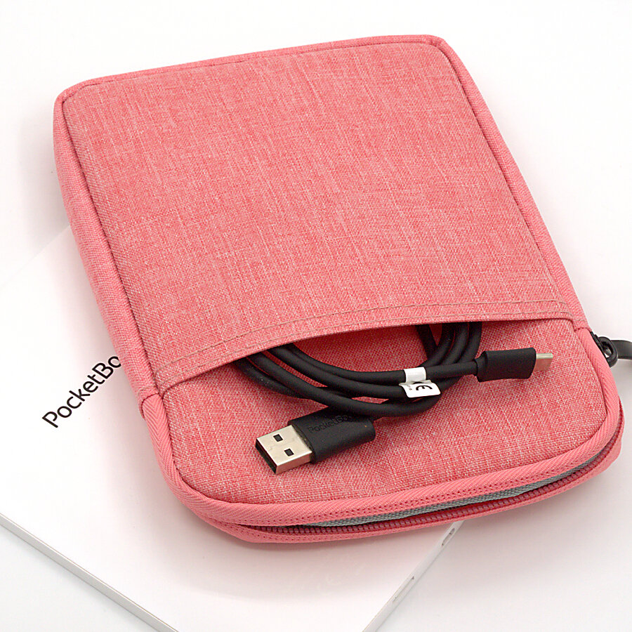 Универсальный чехол-папка AB-pouch для электронной книги 6", с отсеком для проводов и аксессуаров. Розовый