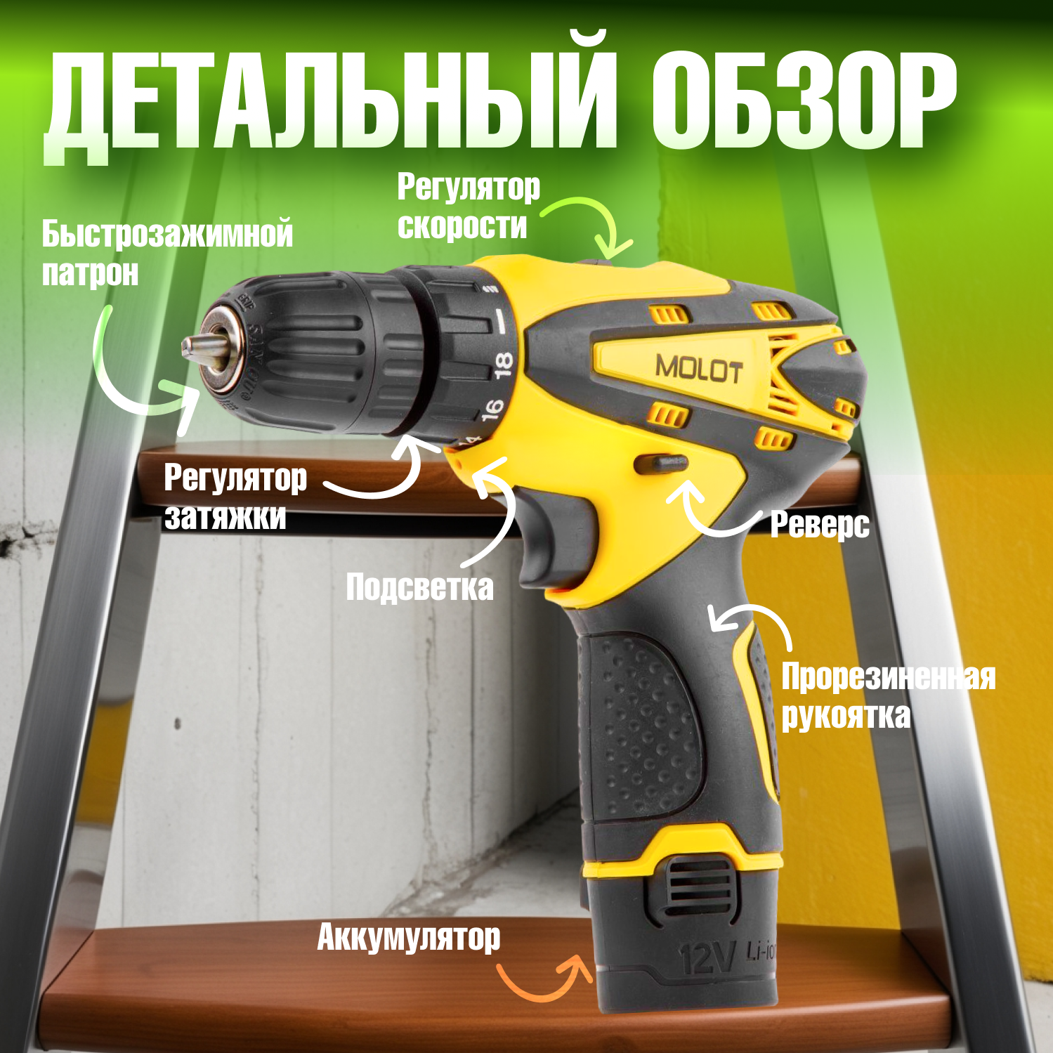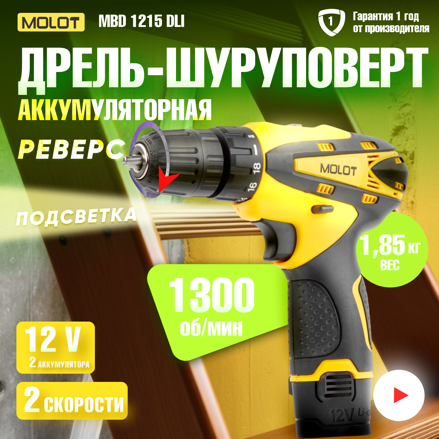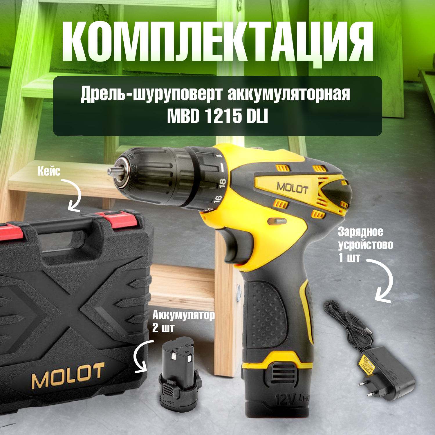 Дрель-шуруповерт аккумуляторная MOLOT MBD 1215 DLI с АКБ и ЗУ (MBD1215DLI0013)