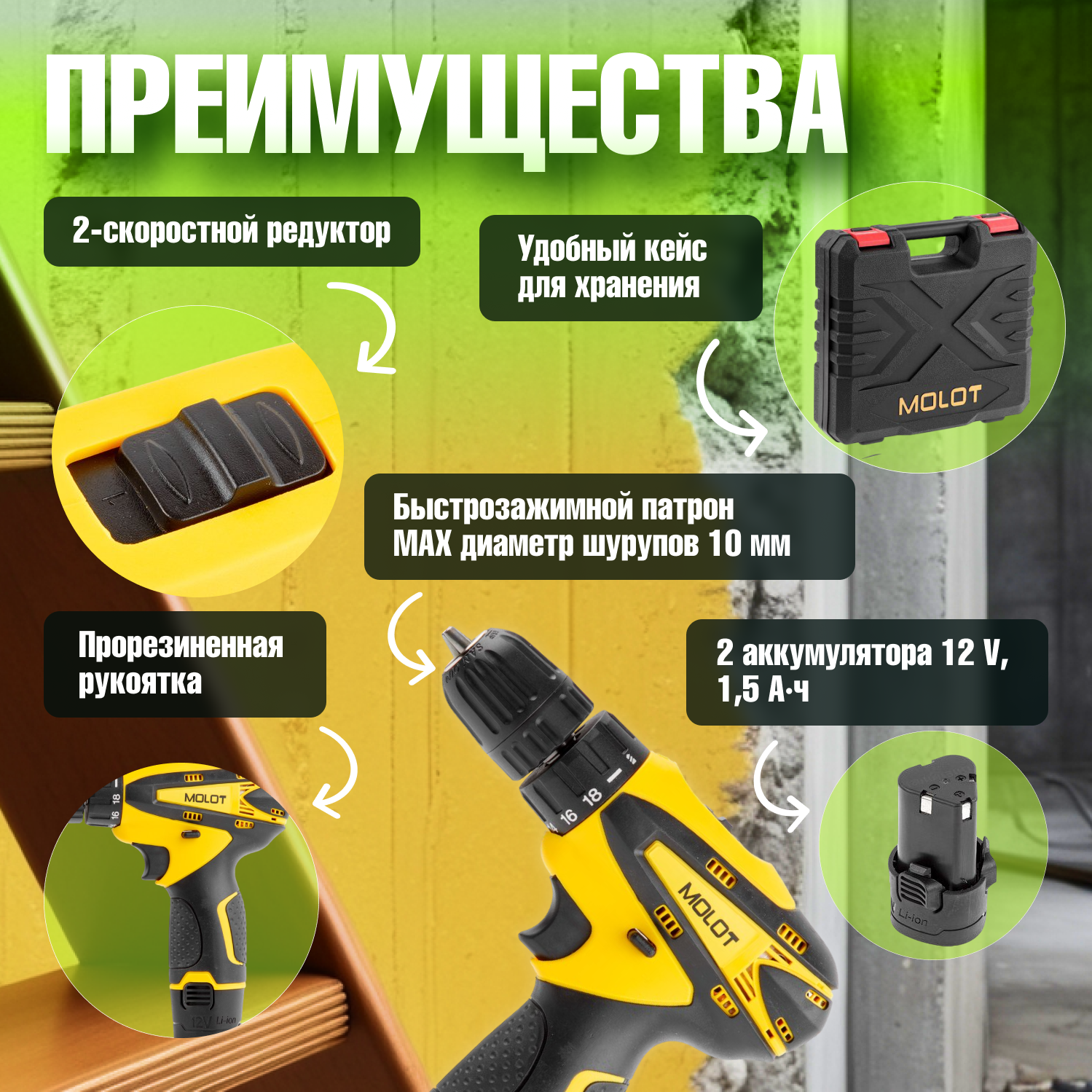 Шуруповерт Molot MBD 1215 DLi MBD1215DLi0013 (с 2-мя АКБ, кейс)
