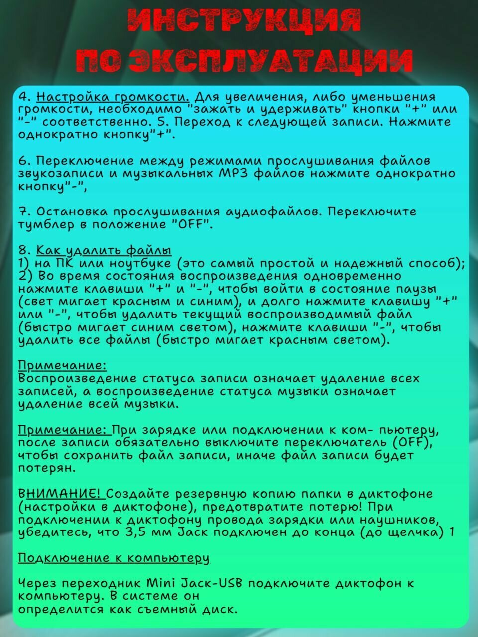 Мини диктофон VR-307 интересное: