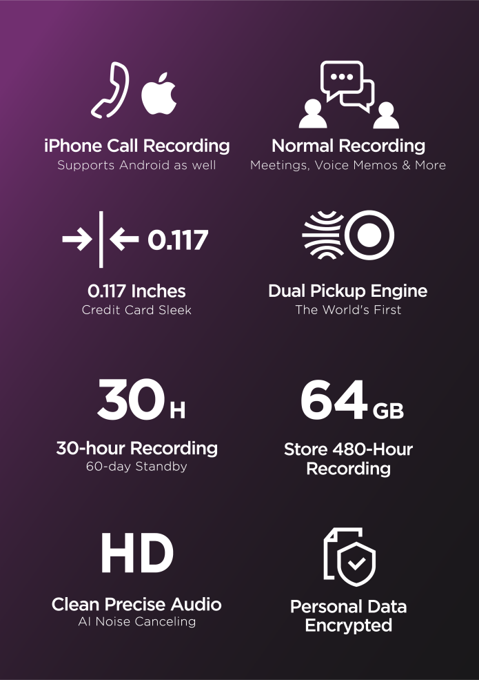 | Дополнительная информация | Диктофон с поддержкой искусственного интеллекта ChatGPT, с функциями перевода записи в текст, заметки, план |