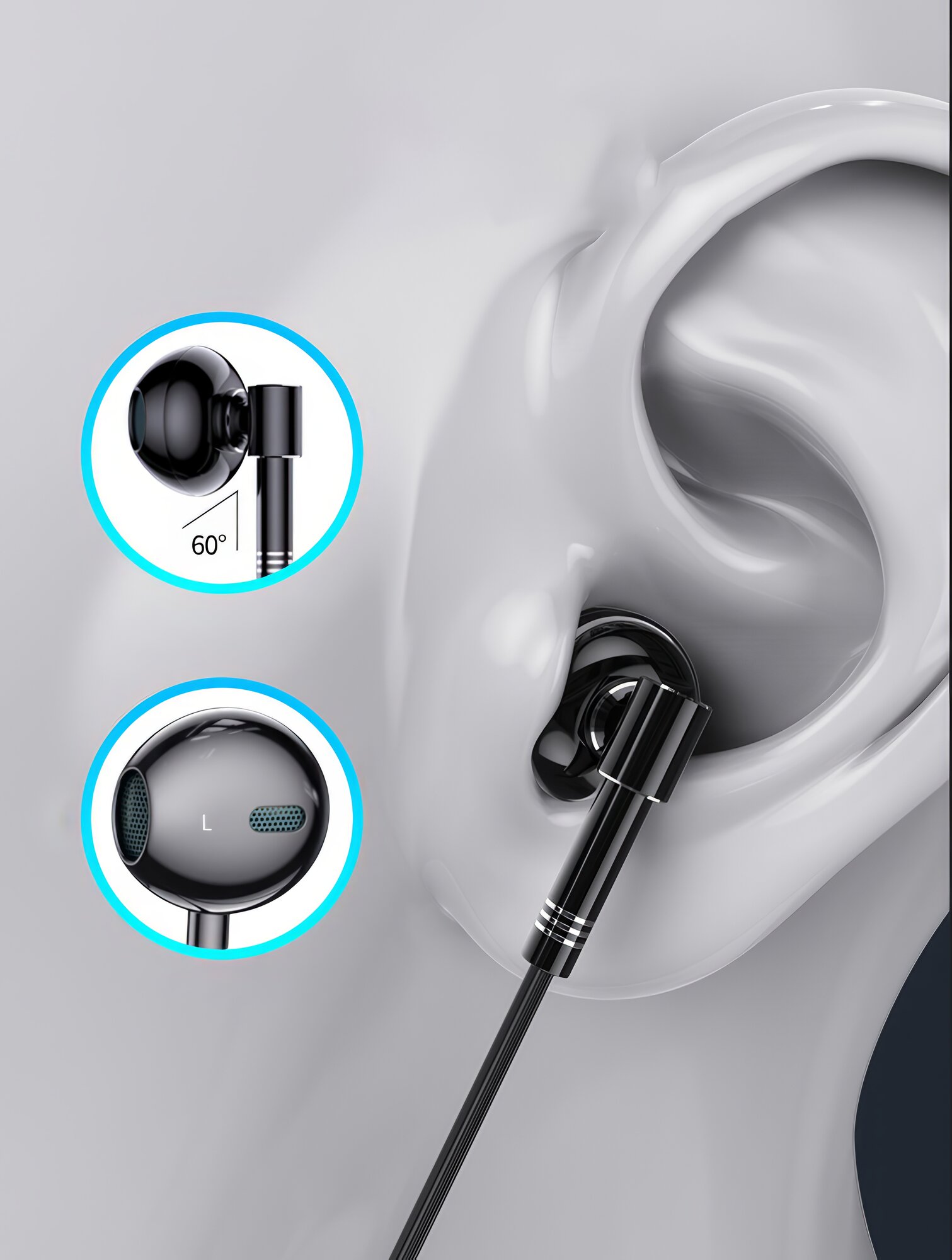 Наушники-вкладыши TECH C81, проводная гарнитура с микрофоном на петличке, 3,5 мм, mini jack, серебристый, серый