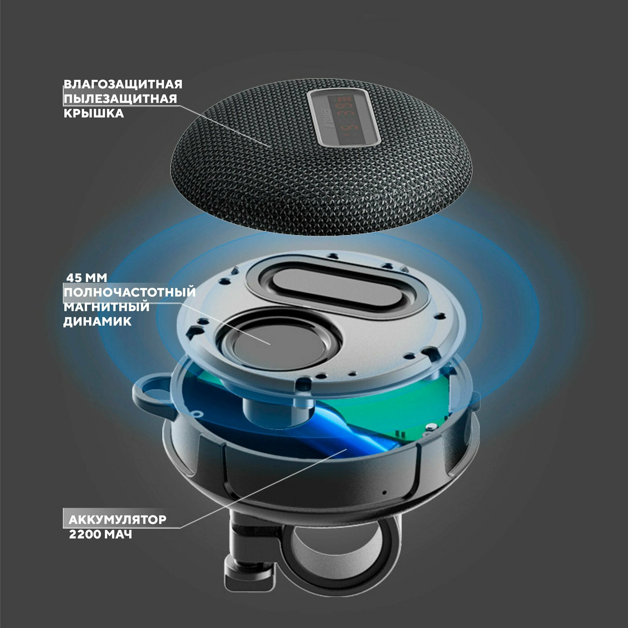 Bluetooth колонка с креплением для руля велосипеда, электросамоката (с дисплеем) интересное: