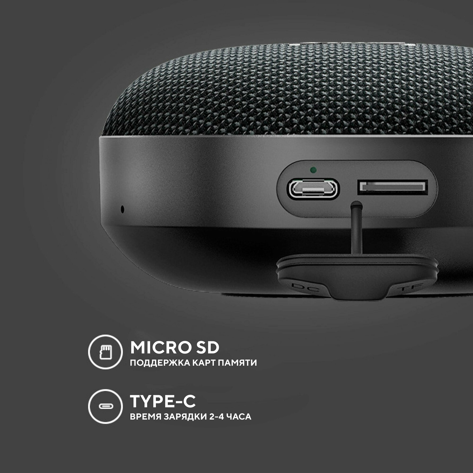 Портативная колонка TFN Quadro, 3Вт, Bluetooth 5.0, microSD, microUSB, IPX6, 1500мАч, черная