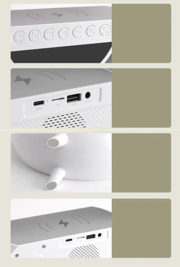 | Особенности | FM-радио / будильник / вибродинамик / встроенные часы / встроенный фонарик / поддержка microSD / работа в пассивном режиме / режим Power Bank / световые эффекты |