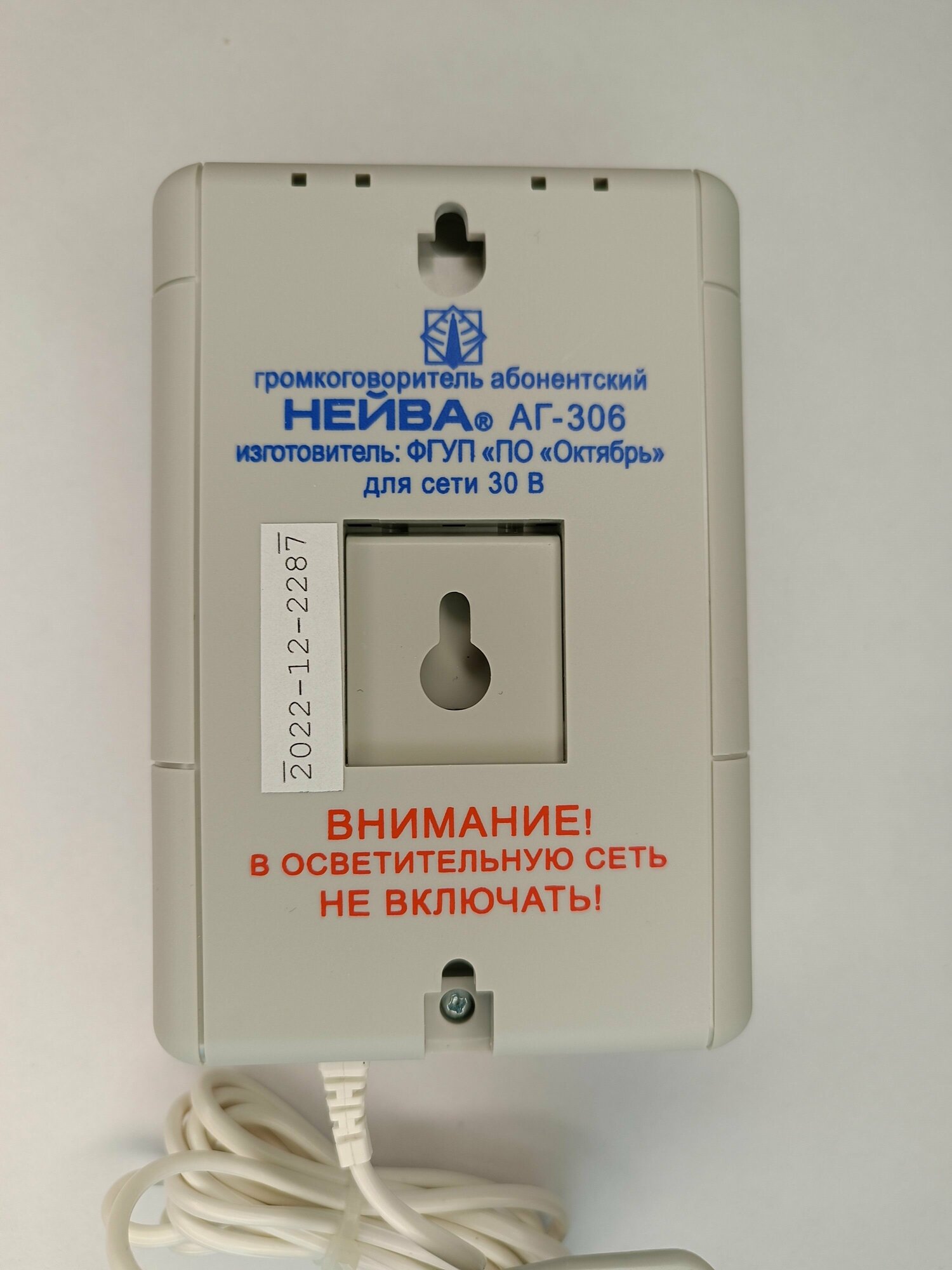 Громкоговоритель абонентский 30В (вилка) однопрограммный Нейва АГ-306 интересное: