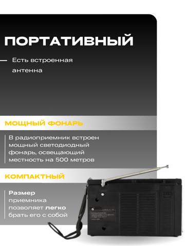 | Дополнительная информация | Радиоприемник аккумуляторный с фонарем |