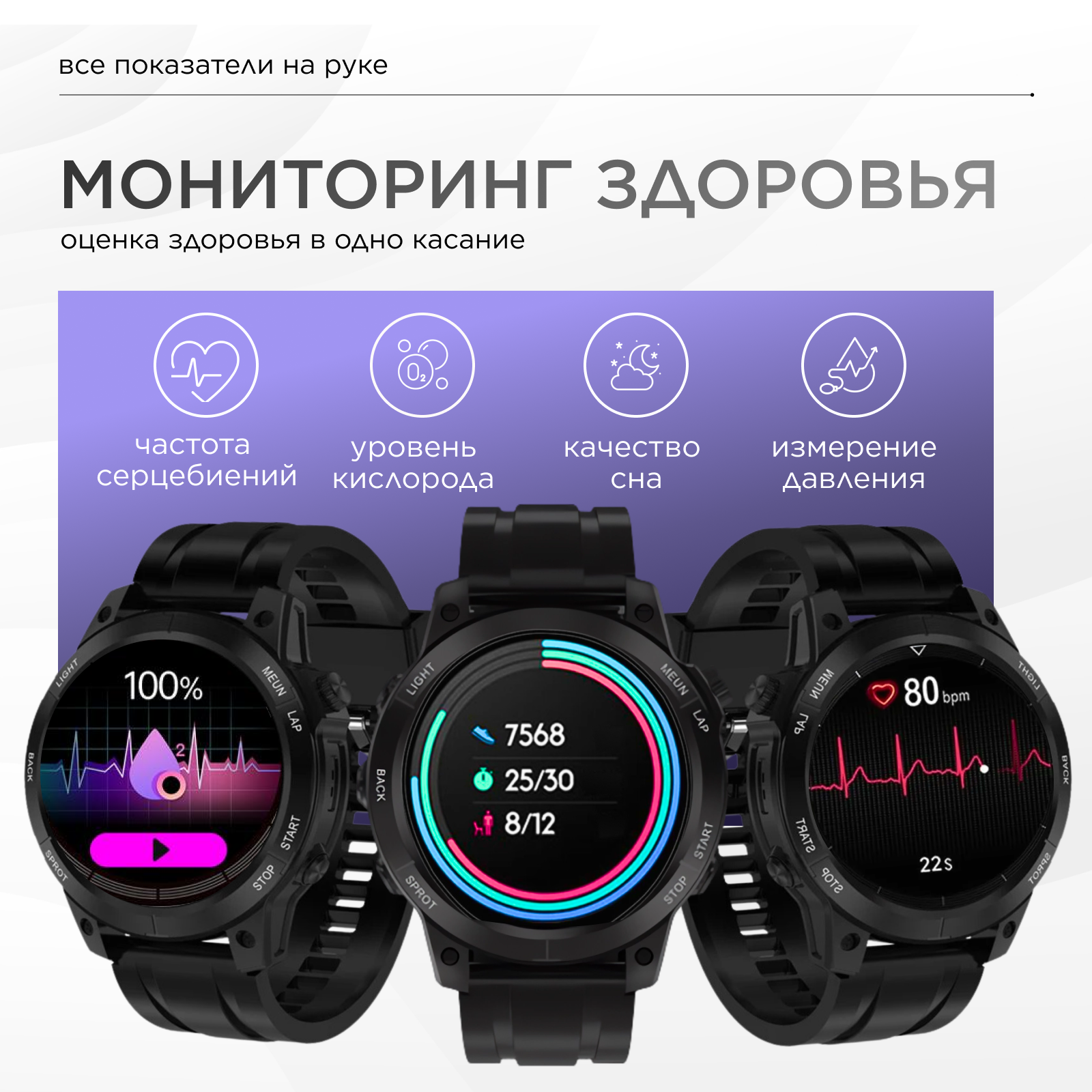 Купить Смарт часы мужские наручные умные электронные черные круглые smart watch на руку для андроид iphone вотч водонепроницаемые спортивные сенсорные фитнес смартчасы