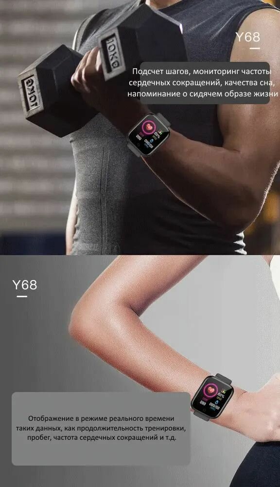 Умные смарт часы MyLatso 38мм, фитнес браслет Y68 GPS трекер D20 интересное: