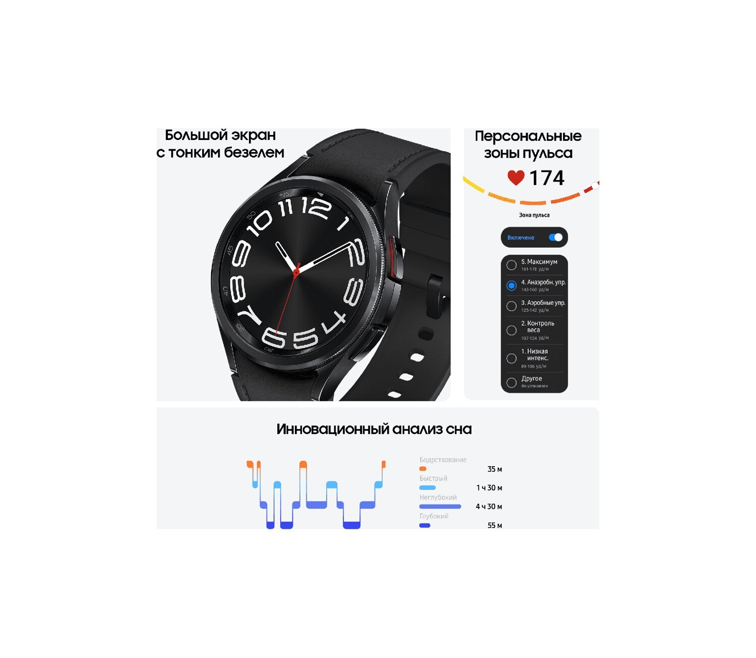 Смарт-часы Samsung Galaxy, 1,6 дюйма, AMOLED, графитовый корпус, ремешок из фторэластомера
