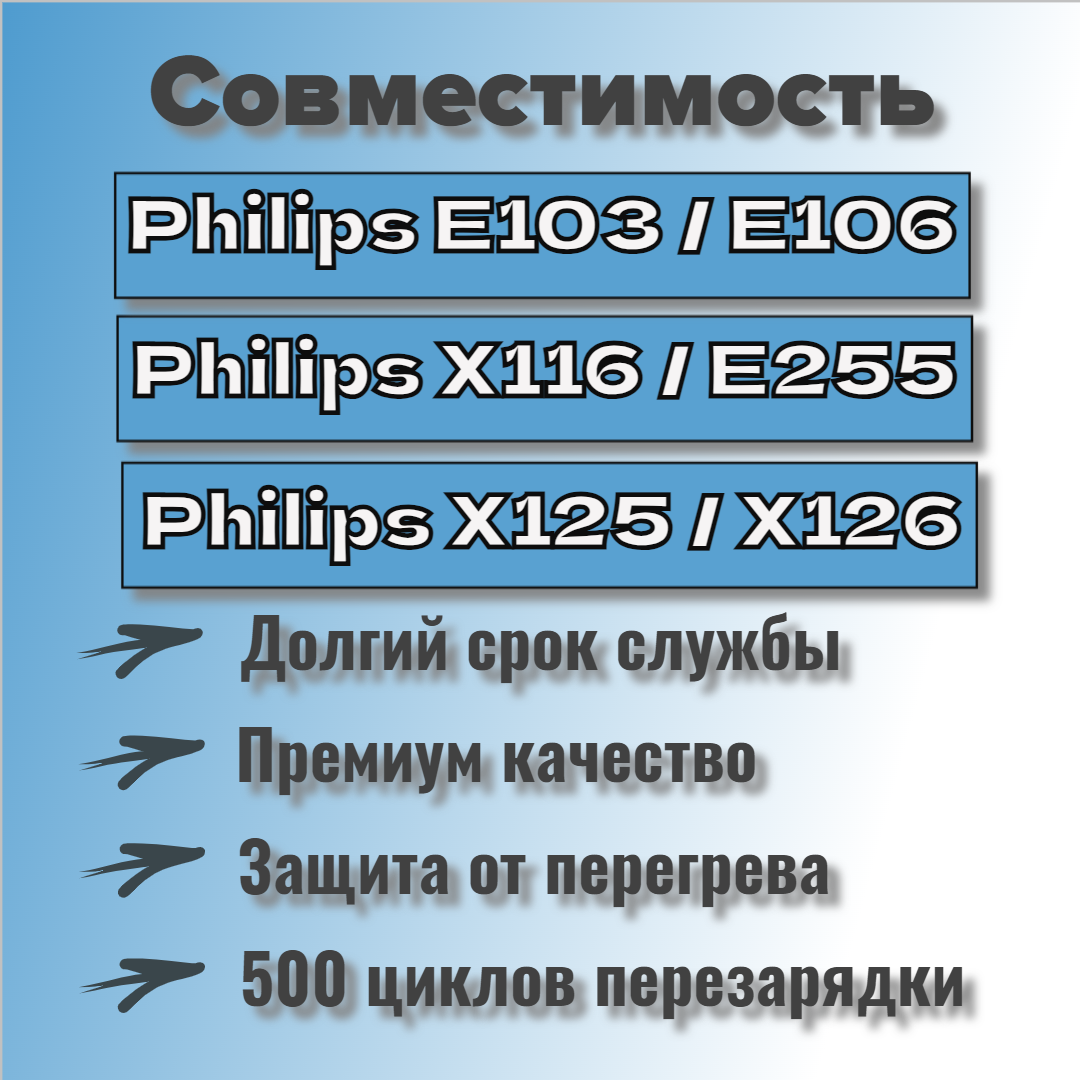 | Совместимые модели | Philips E255 / Philips Xenium E111 / Philips Xenium E255 / Philips Xenium X125 / Philips Xenium X126 / Philips Xenium X128 |