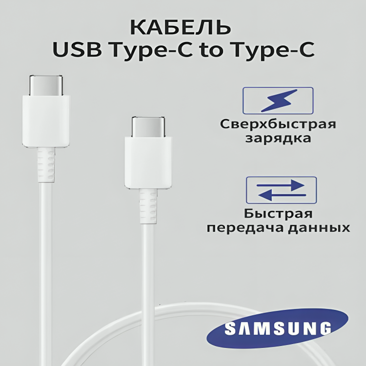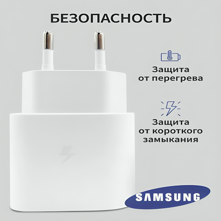 Адаптер для Samsung 25W USB-C + Кабель Type-C (3A), быстрая зарядка, белый интересное: