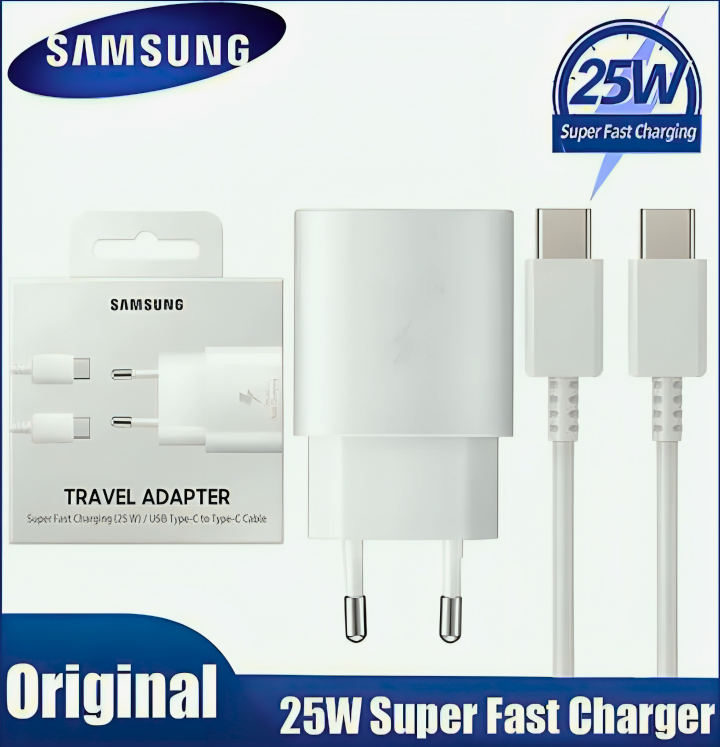 Адаптер 25W USB-C + Кабель Type-C (3A) совместим с Samsung , быстрая зарядка
