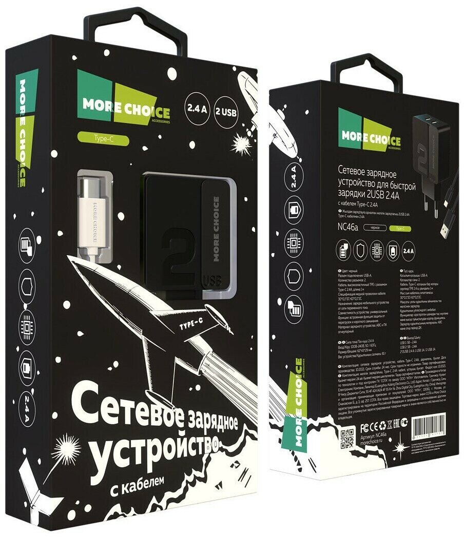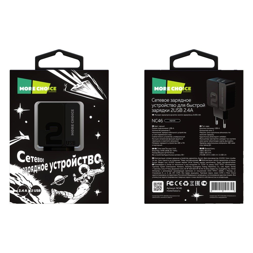 Купить Сетевое зарядное устройство 2USB 2.4A More choice NC46 Black Black