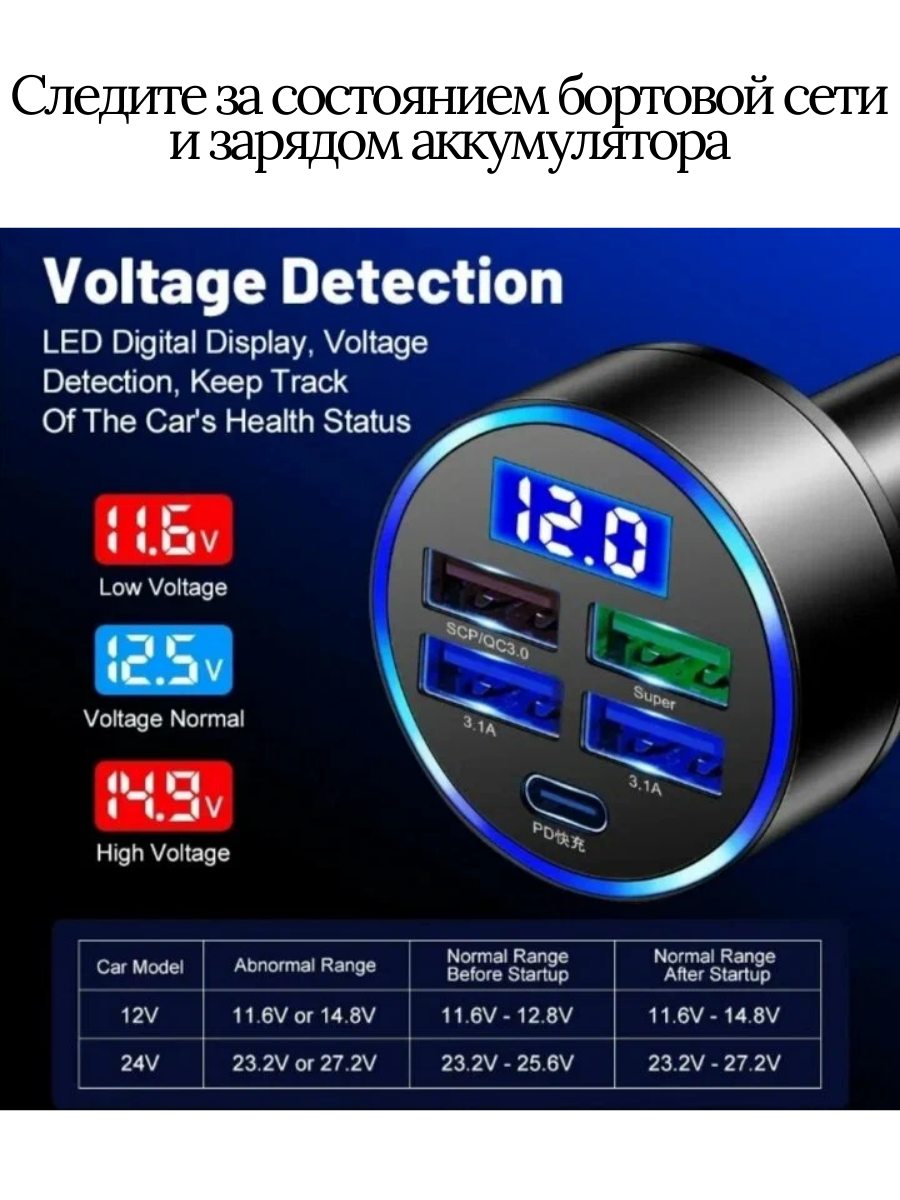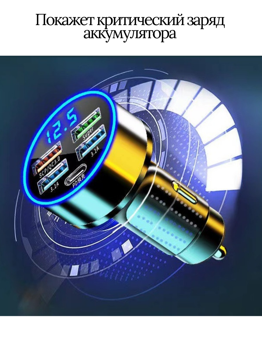 Автомобильная зарядка 4хUSB+PD20W Quick Charge 3.0 с вольтметром интересное: