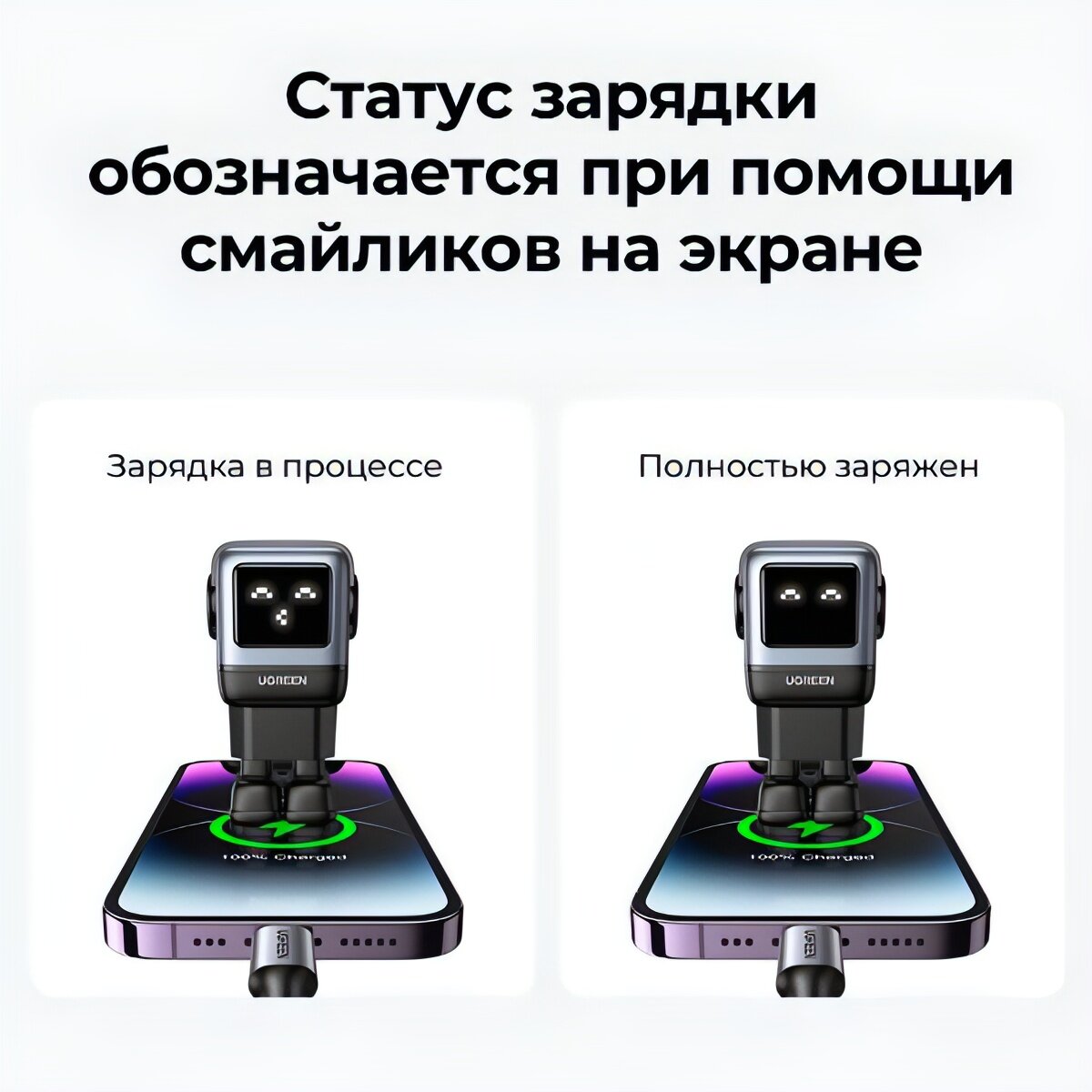 Сетевая зарядка UGREEN CD361 (35291) Robot GaN 65W розовая в виде робота русская вилка