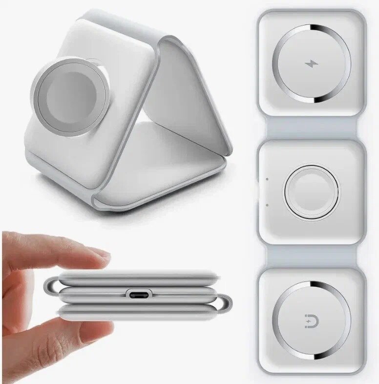 Беспроводная зарядная раскладушка MagSafe 15W для iPhone+iWatch+AirPods / Быстрая зарядка Qi / 3в1 / White интересное: