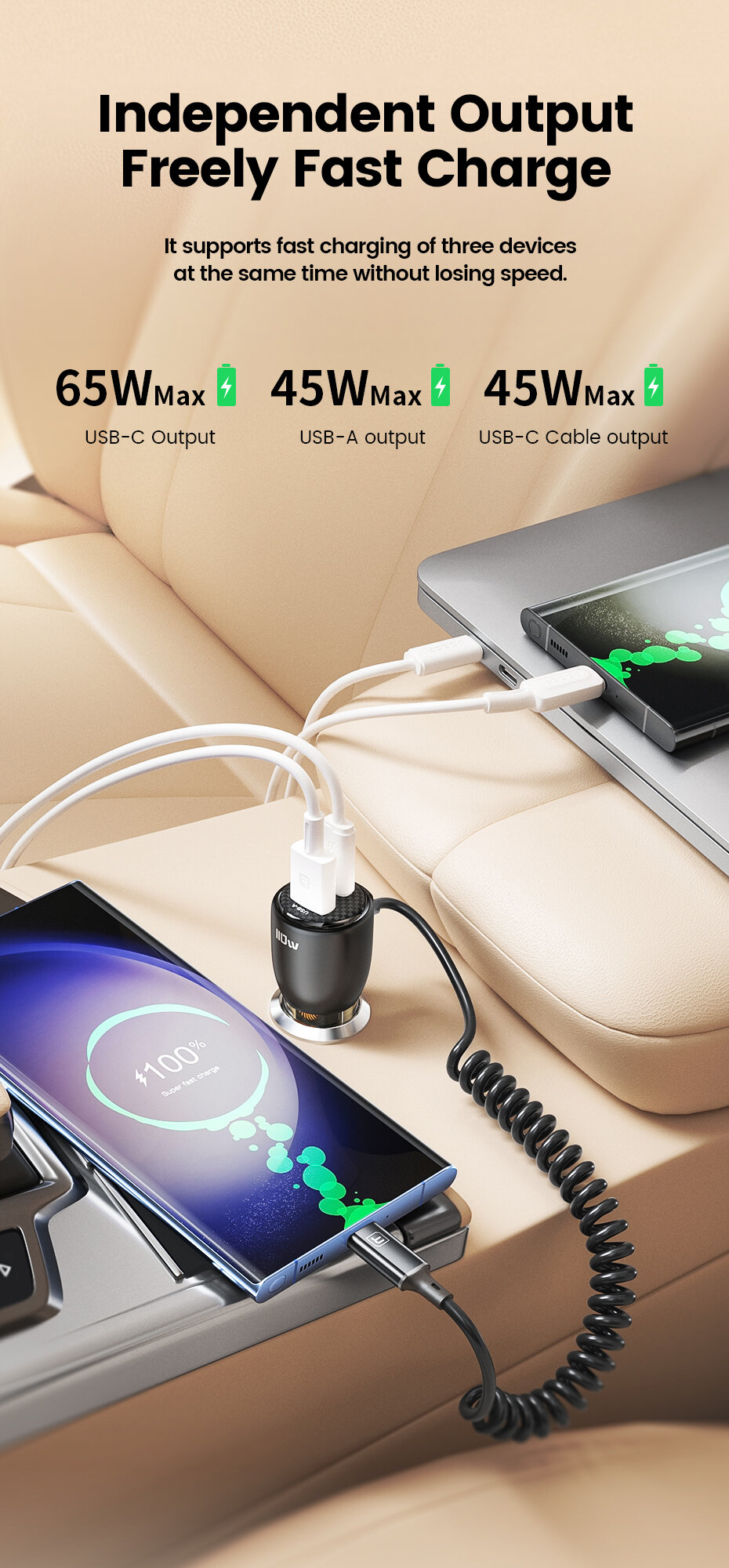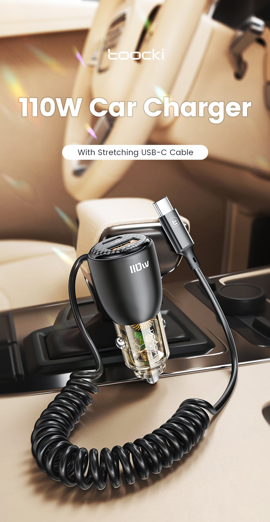 | Дополнительная информация | Автомобильное зарядное устройство A+C, Toocki, 110 Вт, с пружинным кабелем Type-C |