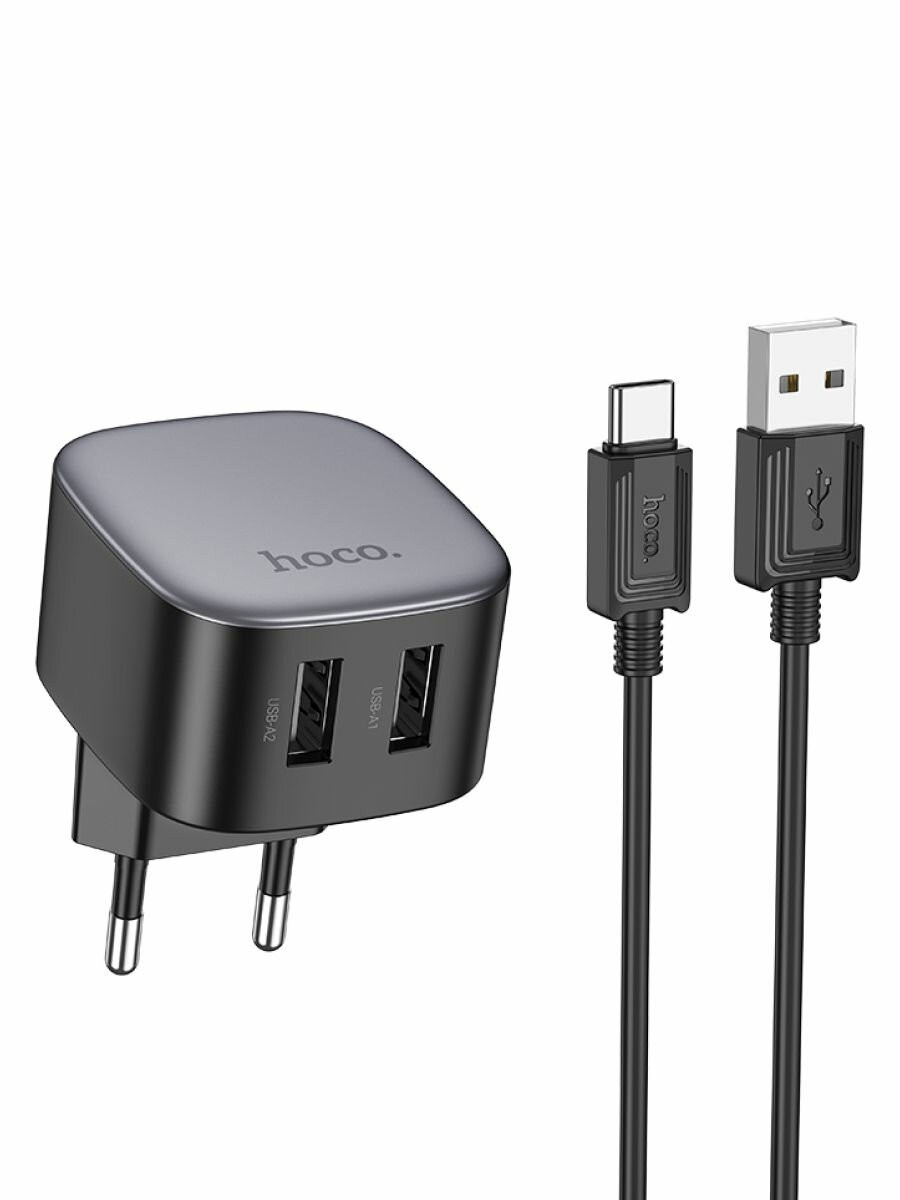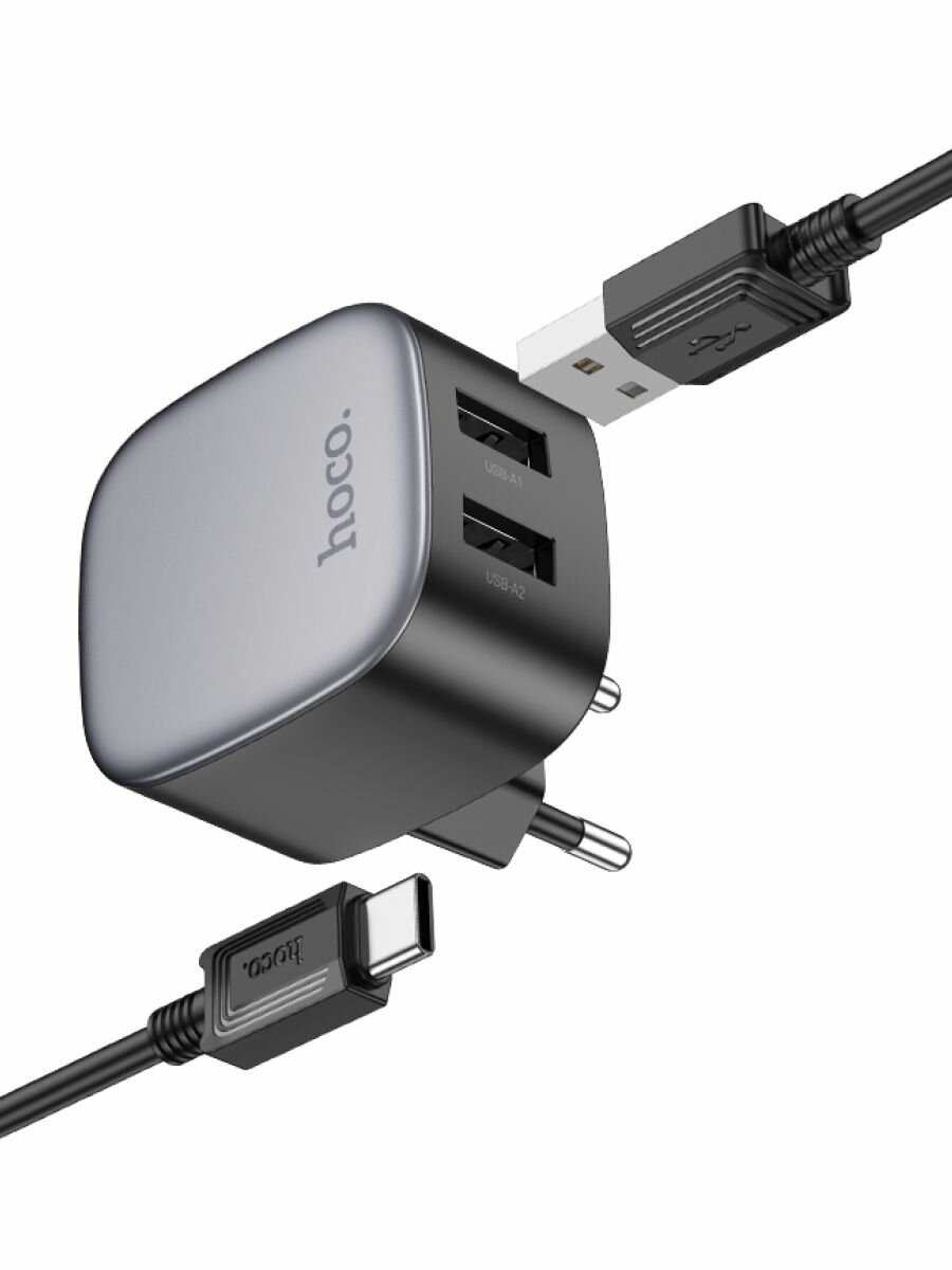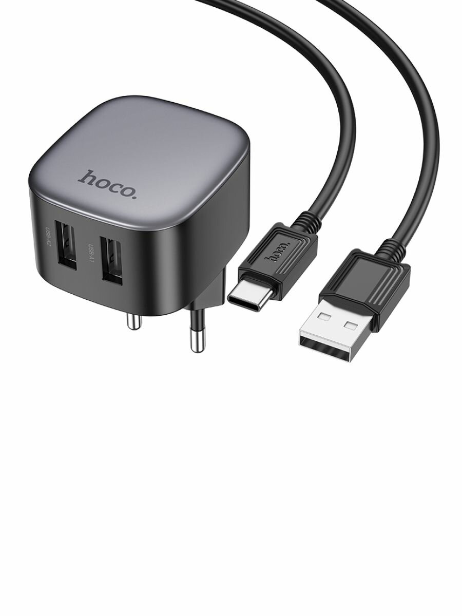 Сетевое зарядное устройство HOCO C111A 1xUSB + 1xUSB Type-C с кабелем Type-C - Type-C, 3.0A, 30W, белый