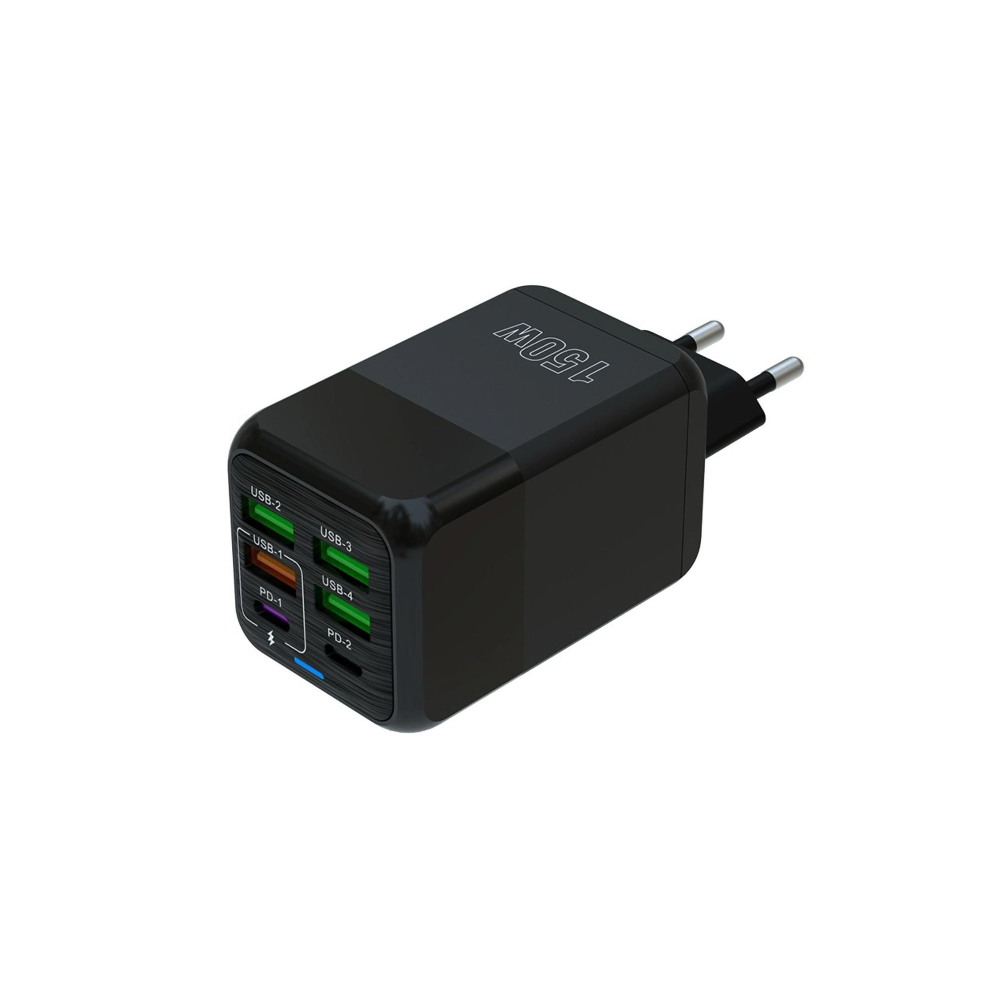 Купить Зарядное устройство (адаптер) для зарядки телефона, планшета. 4 USB порта и 2 Type-C разъема. 150W 5V / цвет черный