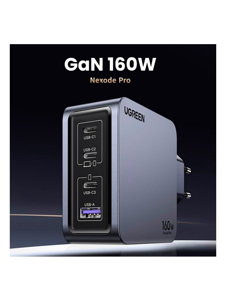 Зарядное устройство UGREEN X763 160W с кабелем 1м 100W Nexode Pro Серый