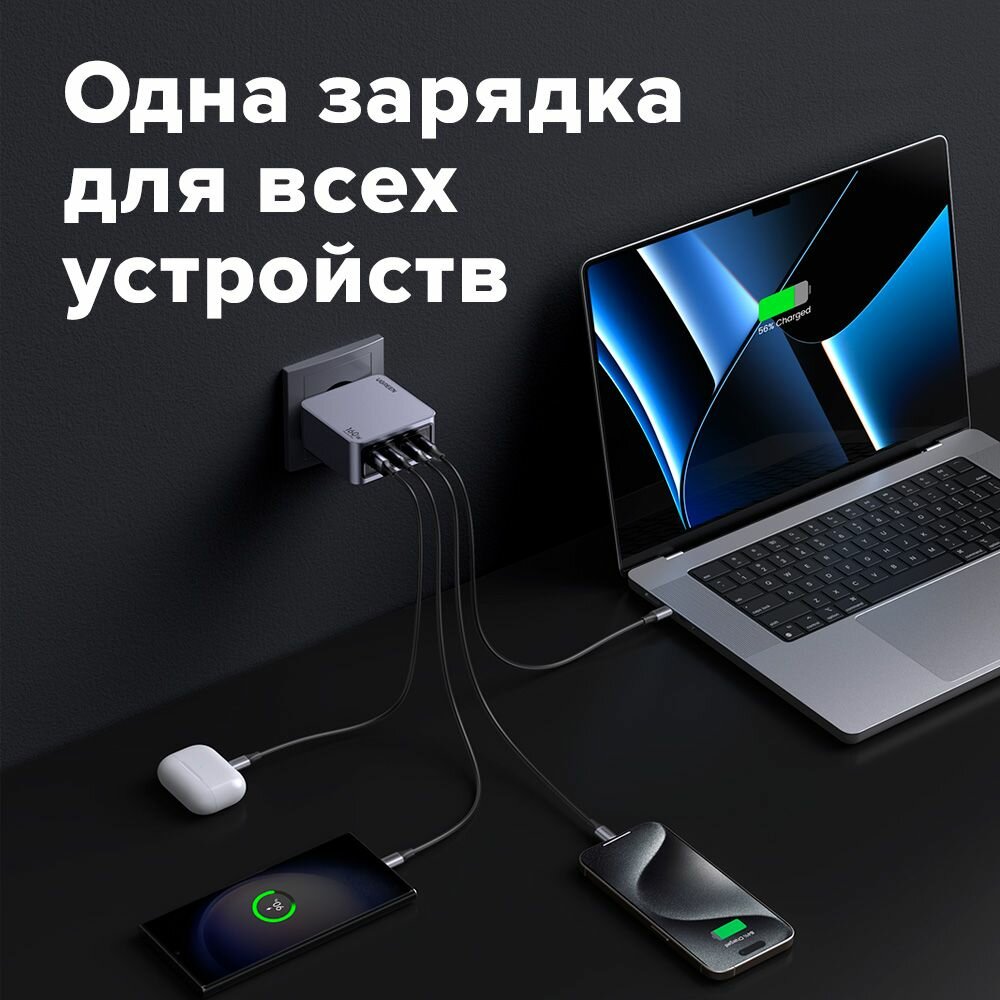 | Дополнительная информация | Интеллектуальный чип GaNInfinity обеспечивает более быструю и эффективную зарядку. |