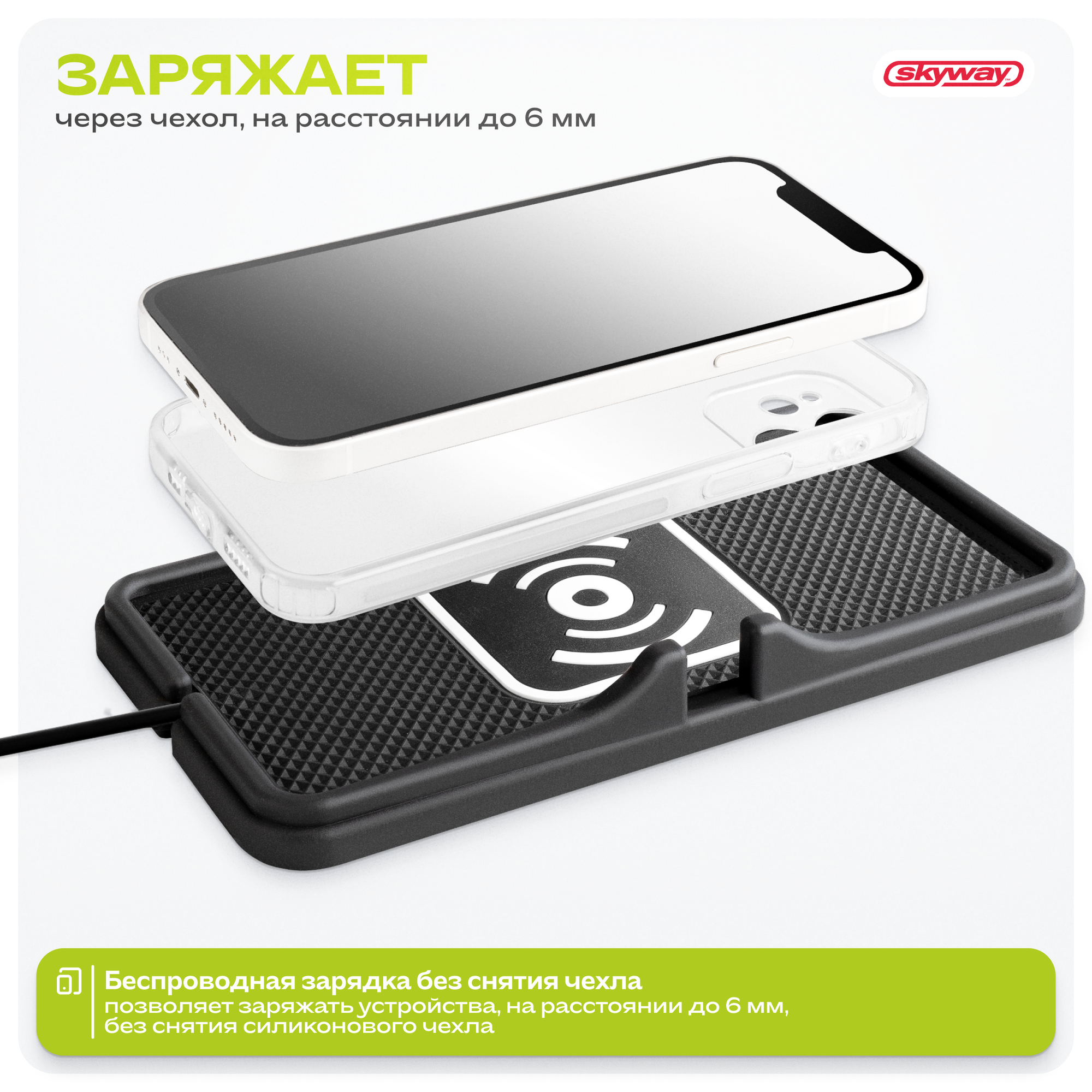 Коврик противоскользящий с беспроводной зарядкой ТМ Skyway SKYWAY C6/USB-A/QC3.0