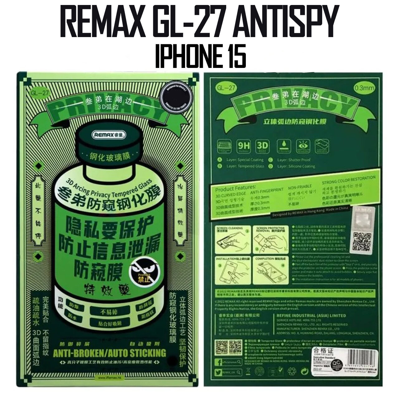 Купить Защитное стекло GL-27 Antispy Remax Medicine Glass оригинал антишпион для iPhone 15 / Айфон 15 (6.1")