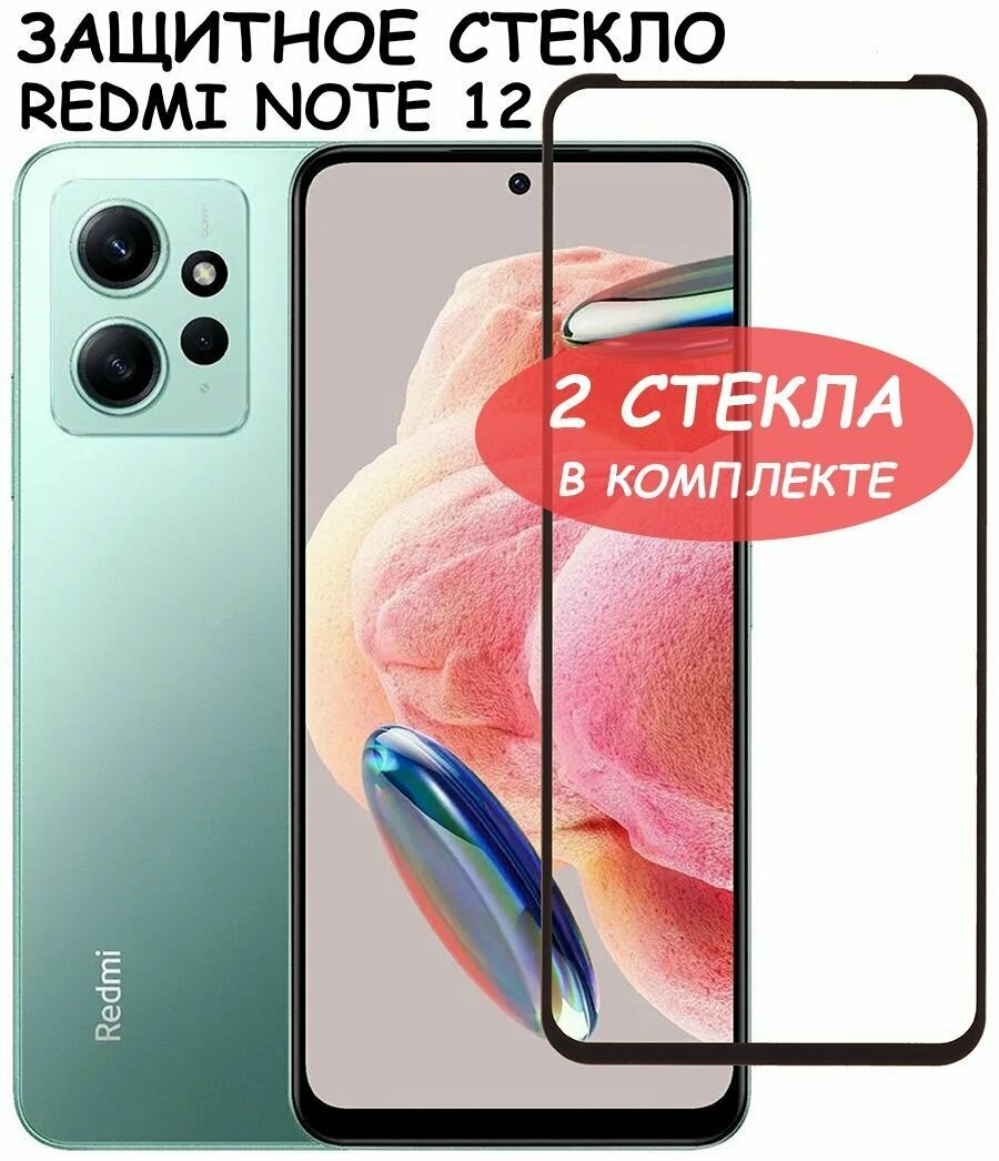 Защитное стекло "Полное покрытие" для Xiaomi Redmi Note 12 / Сяоми Редми Ноте 12 Черное - 2 стекла в комплекте интересное: