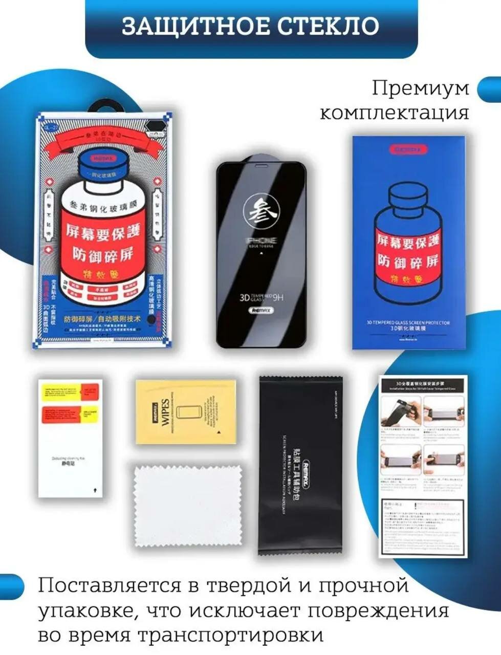Защитное стекло Айфон 16/15 Remax, для iPhone 15/16, 3D, антишпион, глянцевое, олеофобное, черное
