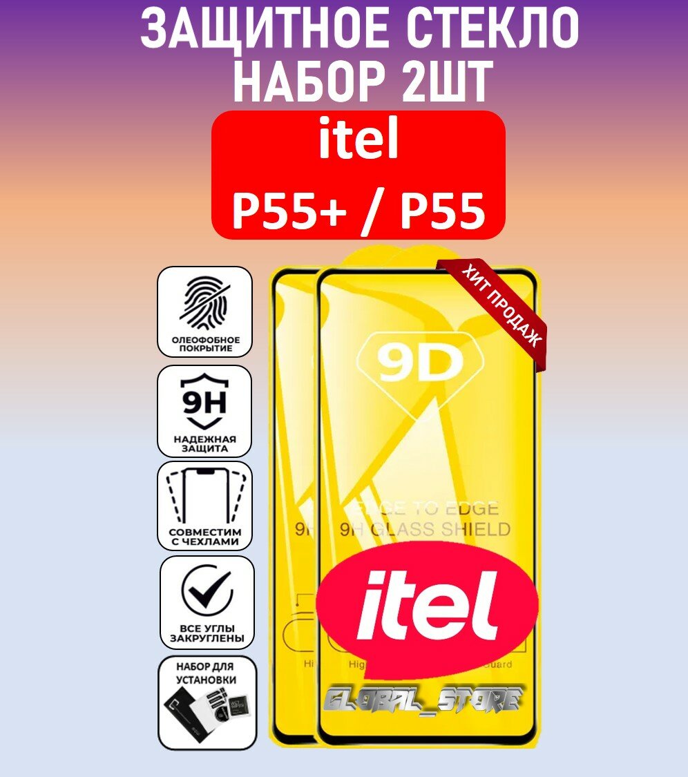 Комплект 2 в 1: Защитное полноэкранное стекло для Itel P55+ / P55 ( 2 шт ) ител П55+ / П55 Full Glue